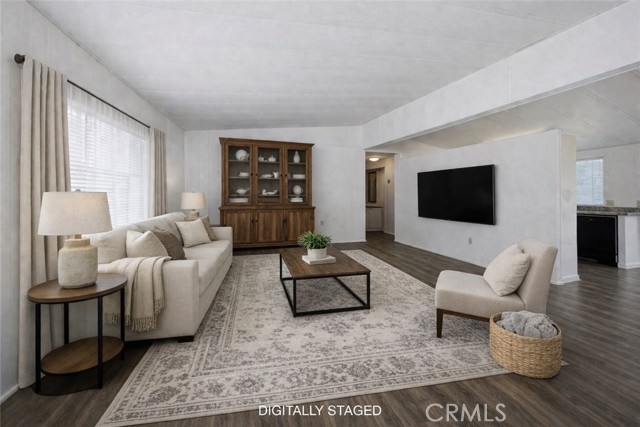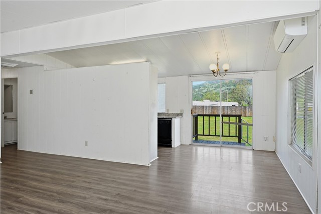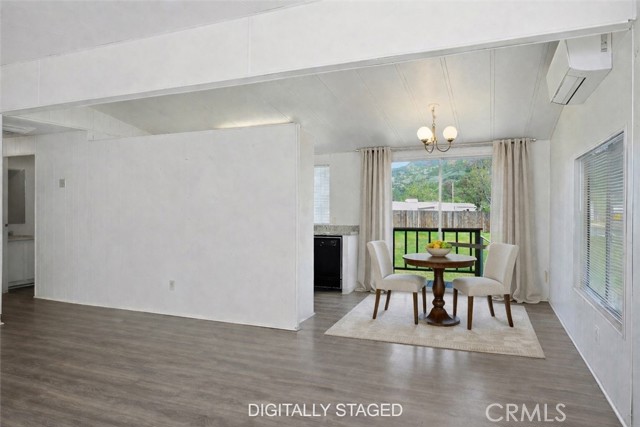 Inside, the open-concept layout connects the living room, dining area, and kitchen in one comfortable flow. A ductless mini-split in the living room keeps the home efficiently heated and cooled year-round. Two bedrooms and two bathrooms round out the floor plan.