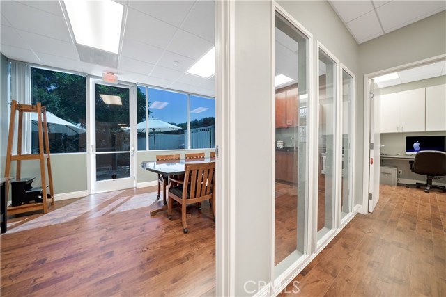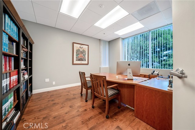 First Class office condominium in Liberty Plaza! Gorgeous main entrance to the building with recent upgrades to the common area and bathrooms. Amazing remodel on this 2,223 sqft 1st floor suite. Stunning entrance, with 5 private offices, a large conference room, 2 very large work stations and gigantic file, server & copy/fax room. 1st class built-ins, wood flooring and electrical, phone & wiring upgrades too. Move right in! This rare and unique location also features 3 entrances/exits as well as a private patio that is just about 1,200 sqft. New HVAC!