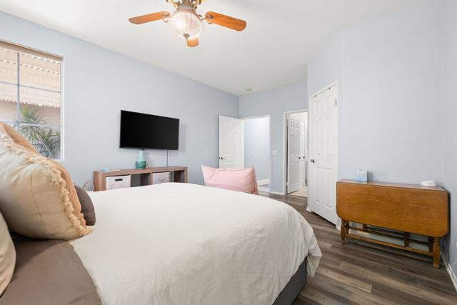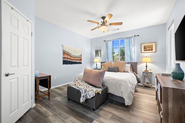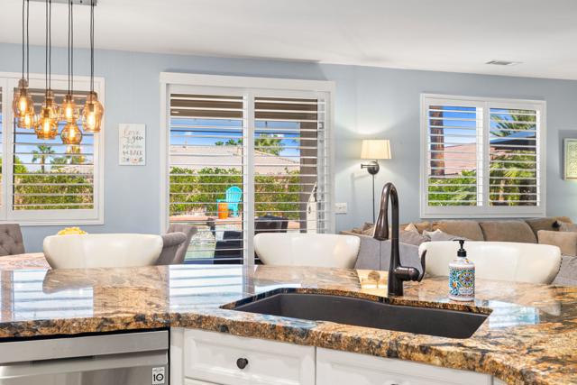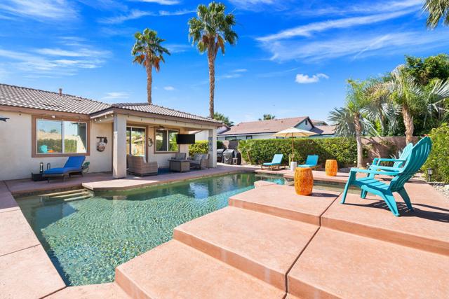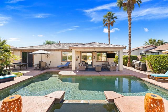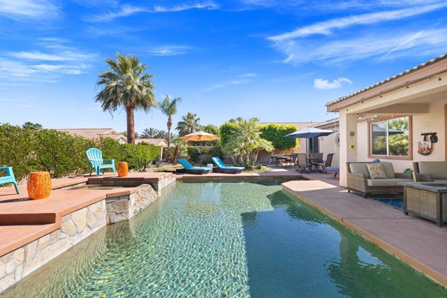 Here is the dream home you have been waiting for! This home has a 3.5% assumable mortgage with approximately $400,000 balance with lender approval This pristine and well-maintained home is the perfect primary home, second home or short term rental. The home has the Indio license for short term rentals but has mainly been the primary residence for the homeowners. You will love the gorgeous pool and spa with coping and decking recently redone. The home features 3 bedrooms, 2 baths, 2 car oversized garage with upgrades galore. The great room is spacious with open dining area and views to the lush back yard with covered patio and large pool and spa. The kitchen has slab granite counters with chiseled edge and stainless appliances. The main bedroom has a walk in closet and ensuite bath with double vanities and walk in shower plus soaking tub. The 2nd bath is also upgraded with double vanities and convenient to bedrooms 2 and 3. All the floors are hard surface. Ceiling fans help cool and circulate air. The garage has storage cabinets and plenty of room for 2 cars. This home is conveniently located to events, stores restaurants, and schools. You will love this home and the wonderful life you will enjoy.