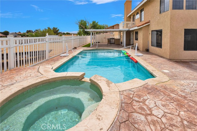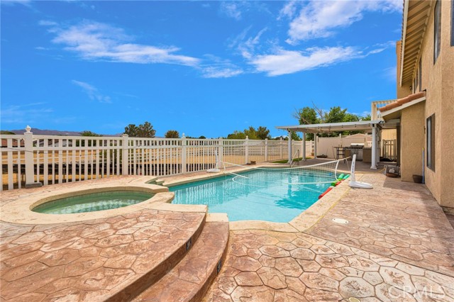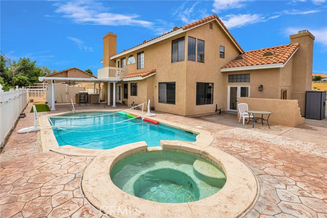 Welcome to this beautifully updated two-story home located just outside the highly desirable Silver Lakes community, offering space, style, and exceptional amenities. Boasting approximately 2,998 square feet of living space, plus an additional ~200 square foot enclosed breezeway, this expansive residence is designed for both comfort and functionality. Step through the formal entry into a thoughtfully designed layout featuring a formal dining room, spacious living room, and inviting family room—perfect for entertaining or everyday living. The home has been extensively updated with newer flooring, fresh paint, and granite countertops in the kitchen, creating a modern yet warm atmosphere throughout. With 4 bedrooms and 3 bathrooms, including a convenient downstairs bedroom, this home offers flexibility for guests or multi-generational living. Cozy up to one of three fireplaces located in the living room, family room, and primary bedroom, adding charm and comfort to multiple living spaces. Enjoy the convenience of an indoor laundry room and abundant storage throughout. Step outside to your private backyard retreat, complete with a large Alumawood-covered patio, built-in BBQ, and a sparkling in-ground pool with attached spa—perfect for relaxing or entertaining year-round. Car enthusiasts and those needing extra space will appreciate the 4-car garage and oversized circular concrete driveway, providing ample parking and curb appeal. All of this, plus the added benefit of a prepaid solar lease through mid 2031, making this home as efficient as it is beautiful. Don’t miss this incredible opportunity to own a spacious, upgraded home in a sought-after location! There are no HOA fees here. This property is located on the outside edge of the assocoiation.