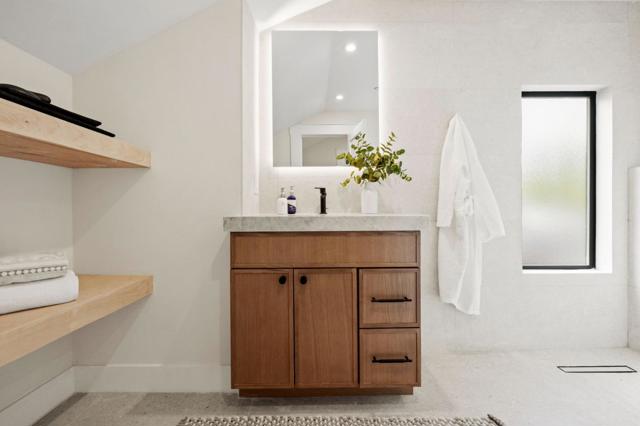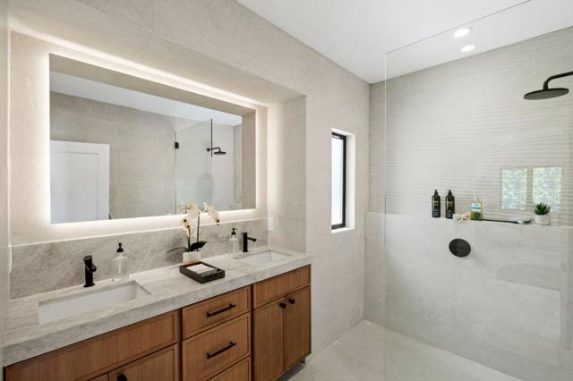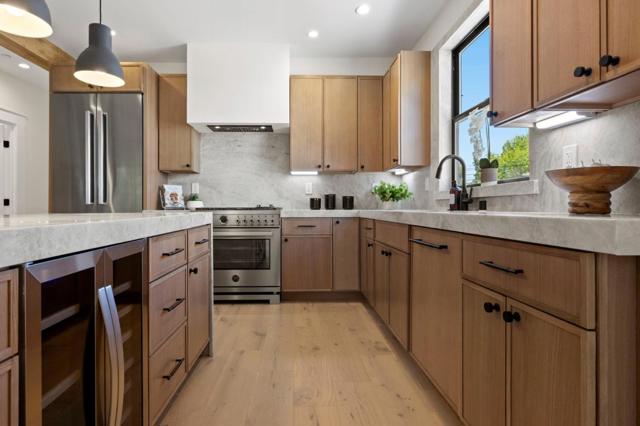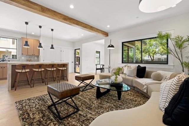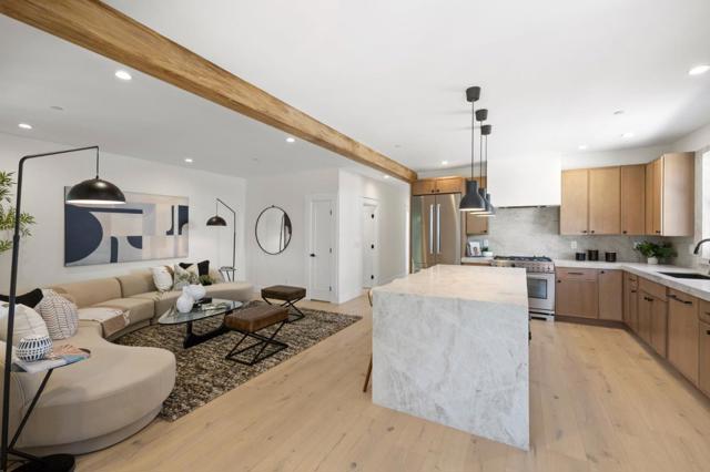 This impeccably remodeled Craftsman residence at 1117 Palm has been taken down to the studs and thoughtfully rebuilt with high-end finishes throughout. Featuring four bedrooms and three bathrooms, the home offers a flexible and functional layout with 2 bedrooms and 1 bathroom upstairs, and 2 bedrooms and 2 bathrooms on the lower level. The spacious ground floor primary suite is a true retreat, complete with a cozy fireplace, a generous walk-in closet, and a spa-inspired bathroom adorned with natural stone finishes. The expansive living and dining areas are filled with natural light and designed for both everyday living and entertaining. The chefs kitchen is beautifully appointed with quartzite countertops, high-end appliances, and refined finishes that carry throughout the home. Step outside to a private backyard with a large deck, perfect for dining, entertaining, and enjoying the California lifestyle. The fully updated garage offers incredible versatility, featuring recessed lighting and French doors that open to the backyard. This space is ideal as a home office or gym, with potential for an ADU (buyer to verify). Major upgrades include new plumbing, electrical, windows, a 50-year presidential roof, new furnace, and air conditioning, offering peace of mind for years to come.