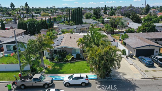 Situated on a spacious lot in a peaceful Garden Grove neighborhood, this well-maintained single-level residence offers comfortable living, thoughtful upgrades, and outstanding outdoor enjoyment. The interior welcomes you with bright living areas enhanced by natural light and an open flow connecting the main gathering spaces. A versatile enclosed sunroom expands the usable living area, offering the perfect space for a lounge, home office, fitness room, or entertainment area. The kitchen is equipped with granite countertops, stainless steel appliances, custom cabinetry with convenient pull-out storage, and a nearby laundry area for added practicality. The adjoining family room creates a comfortable environment for relaxing evenings, highlighted by a stylish gas fireplace feature. Property upgrades such as windows, Copper plumbing, Tankless water, heater, Newer roof with energy-efficient cool roof system, Updated HVAC system, Solar panels, security door, RV parking with utility hook-ups. Outdoor living is a standout feature of this property. The expansive backyard provides privacy and multiple covered seating areas ideal for entertaining, outdoor dining, or enjoying all year-round weather. Mature landscaping, decorative hardscape elements, and a custom water feature create a peaceful retreat-like setting.