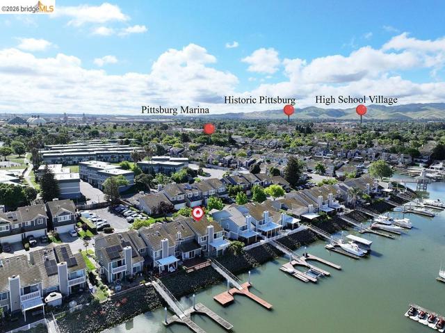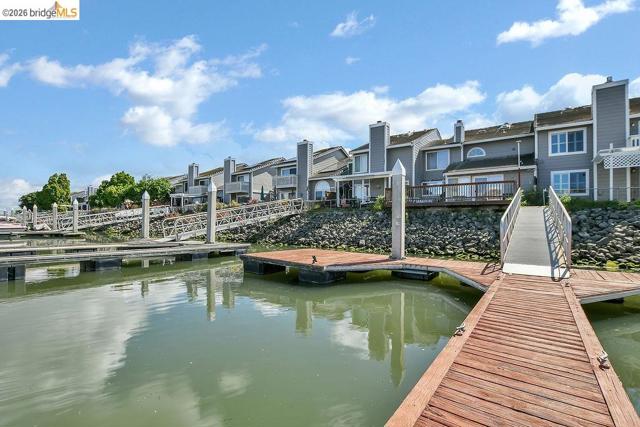 RARE WATER FRONT END UNIT (with semi private dock) NOW AVAILABLE IN THE MARINA PARK NEIGHBORHOOD ! End units are sought after in Marina Park for many reasons. These units only have one shared wall which means the open side has more windows and sun light, including a kitchen bay window. The lots are usually larger, so you’ll have the option of building a larger deck if you wish. Not only will you be able to cantilever your deck over the lagoon rocks, you can also extend the deck into your side yard (with city permits). Many of your neighbors have done this already. Enjoy life on the water with your boat or jet ski just a few steps away. This sunny end unit features 4 bedrooms 2.5 baths. Amenities include: Private boat slip, newer double pane windows throughout, kitchen nook with bay window, microwave, oven and range, dishwasher, refrigerator, some hardwood floors, ceiling fans, some plantation shutters, gas burning fireplace with oak mantle, separate dining room, separate laundry room, sitting deck off primary bedroom, primary bedroom walk-in closet, closet organizers in each bedroom, attic fan, 2 car garage, ample guest parking across the street, and landscaping included. Subdivision: Marina Park: walking distance to historical downtown Pittsburg with shopping and restaurants, multiple community hot tubs and a community swimming pool. Railroad Bart station only 1.7 miles away. Home is located close to the Pittsburg Yacht Club. Yacht Club and the city of Pittsburg are very active with many events.