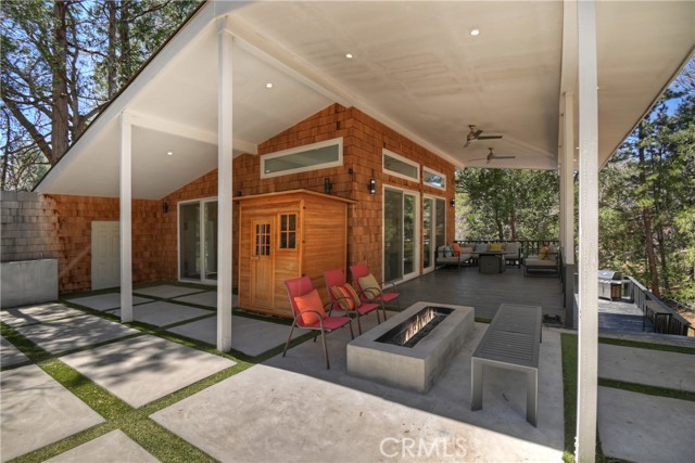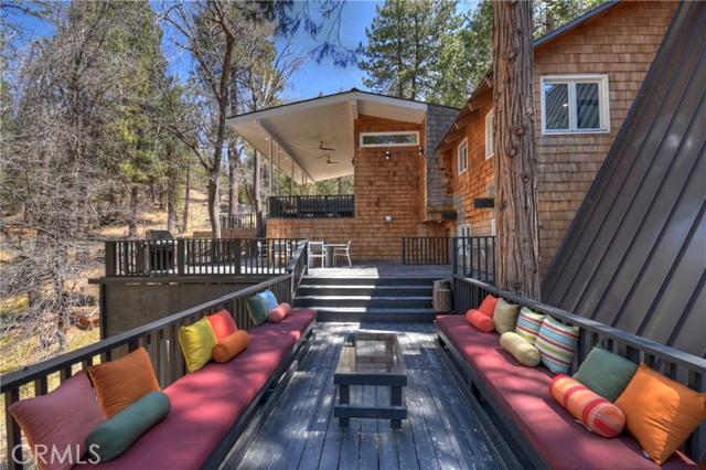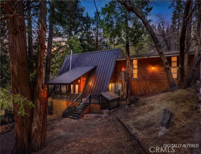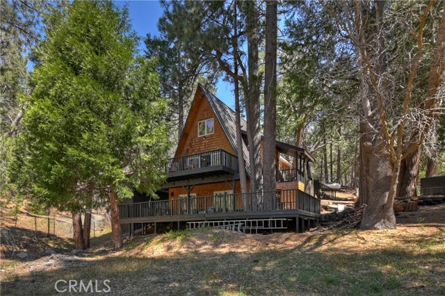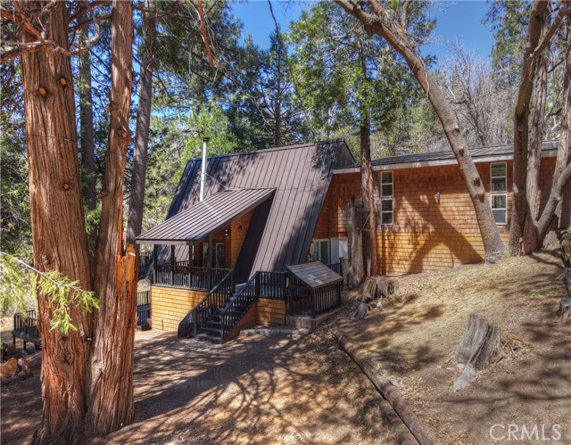 Step into your own secluded paradise where towering pines, fresh mountain air, and the gentle rustle of leaves create a sense of serenity that’s hard to find anywhere else ~ This enchanting A-frame custom cabin, perched on over 2 acres of pure bliss, offers the perfect illusion of total privacy ~ Whether you’re dreaming of adding a garage or workshop or creating an ADU, there’s room to bring your vision to life ~ Imagine mornings sipping coffee on your expansive deck as sunlight filters through the trees, and evenings wrapped in cozy warmth by the wood-burning stove as the forest whispers outside your windows ~ Inside, 2,400 sq. ft. of thoughtfully designed living space includes three spacious bedrooms, an additional sleeping area and a cozy office space, each level with its own full bathroom, and a family room crafted for connection, entertaining, and making lasting memories ~ Double glass doors create seamless indoor-outdoor living, opening onto over 2,000 sq. ft. of deck space that invites alfresco dinners, stargazing, or quiet reflection among the fresh smell of pines ~ Adventure is close ~ 3 miles to Snow Valley Resort, 5 miles to Sky Park at Santa’s Village, 7 miles to Lake Arrowhead Village for dining, shopping, and entertainment, and only 10 miles to Big Bear Lake ~ Additional amenities include, a metal roof, automatic start generator, EV charger, outdoor sauna, fire pits, two laundry areas, city sewer connection, and a gated entry, this all combines convenience with mountain charm ~ Whether you’re seeking a primary residence, a vacation retreat, or a smart investment, this property offers room to expand, build, and create the mountain lifestyle you’ve always dreamed of ~ Don’t just imagine it, experience the forest, the tranquility, and the magic of this one-of-a-kind sanctuary ~ 2015 Triumph 16'-10" fishing boat with fish finder and trailer can be purchased outside of escrow.