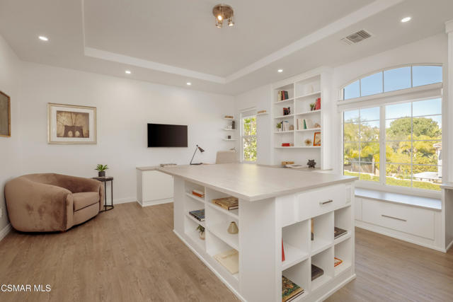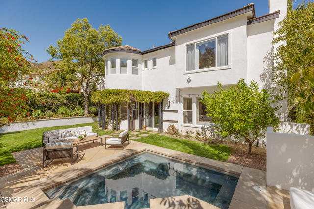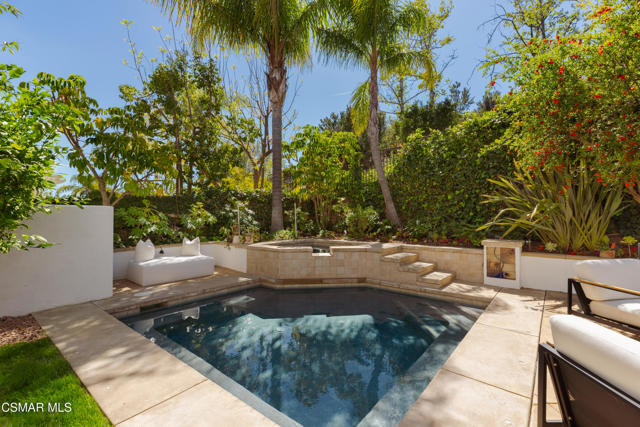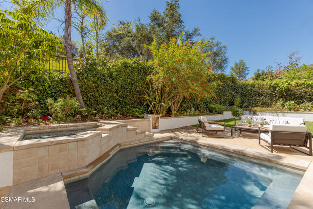 Located in the prestigious Chambord community of Oak Park, this exceptional luxury residence offers refined living in one of the area's most sought-after neighborhoods. Built in 2002, the home features soaring ceilings, elegant architectural details, and an expansive chef's kitchen designed for effortless entertaining, all complemented by a seamless, spacious and flowing floor plan.This is the only floor plan in Chambord featuring a downstairs bedroom and full bath--perfect for guests, multigenerational living, a private office, or flexible lifestyle needs. There are five bedrooms total, four of which are ensuite, each with customized closets. A versatile second-floor bonus room provides the perfect space for a home office, gym, media room, playroom, or study area. Blending timeless style with generous living spaces, this home delivers a rare combination of sophistication, functionality, and exclusivity. Please refer to the enhancements and upgrades sheet for a complete list of additional features and improvements.The backyard is an entertainer's dream, ideal for dining al fresco, relaxing swims, and enjoying the jacuzzi, with ample grassy space for children and pets to play.Situated in a beautifully maintained Ventura County community, the property is just moments from Deerhill Park, featuring Pickleball and basketball courts, playgrounds, and soccer and baseball fields. Enjoy close proximity to top-rated schools, including Medea Creek Middle School and Oak Park High School, both less than half a mile away. Hiking trailheads are nearby. Ideally located approximately 15 miles from Malibu's Zuma Beach, Oak Park is an unincorporated community renowned for its award-winning school district and convenient access to both Agoura Hills and Westlake Village.
