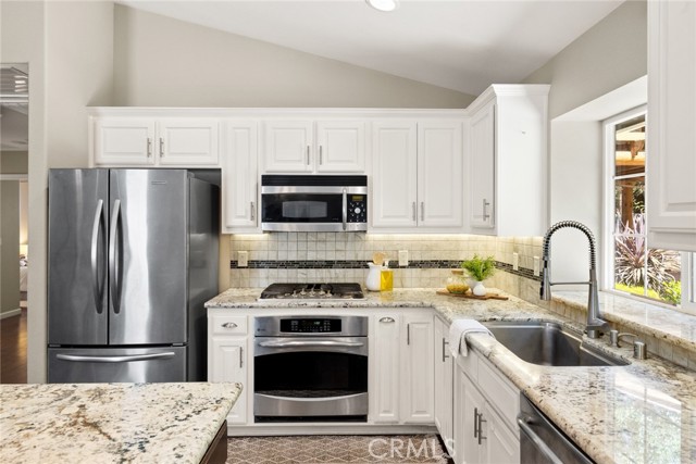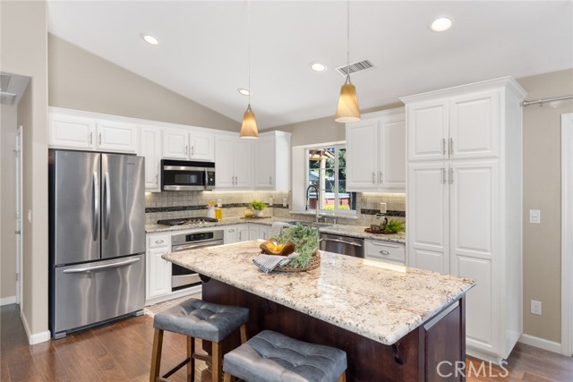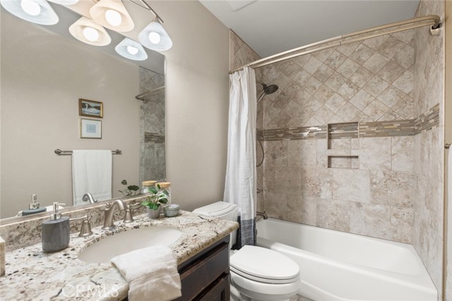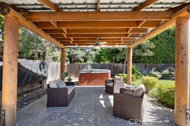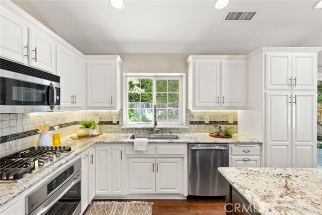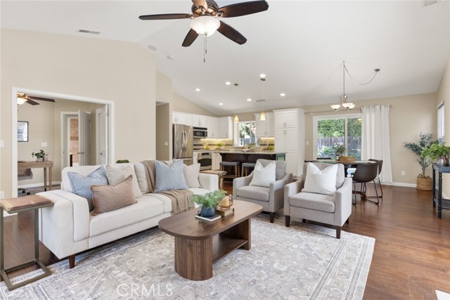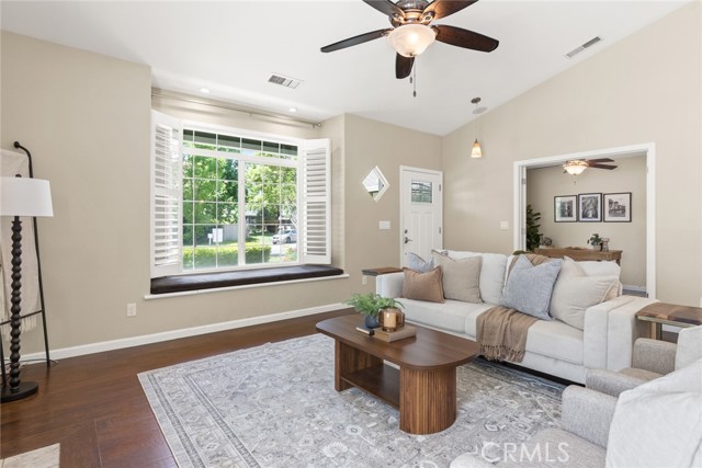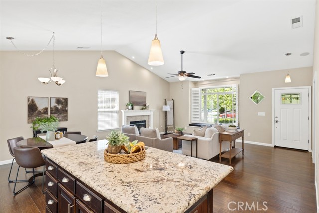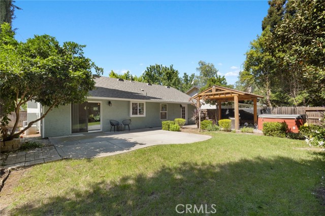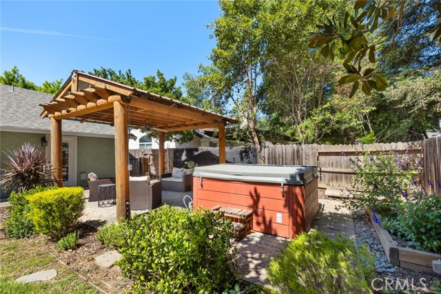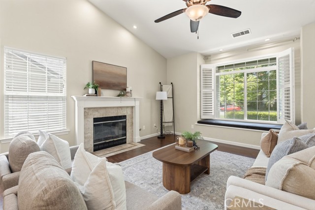 Tucked away at the end of a peaceful cul-de-sac, this beautifully maintained 3-bedroom, 2-bath home offers the perfect blend of comfort, style, and functionality. From the moment you arrive, the attractive landscaping and inviting curb appeal set the tone for what’s inside. Step through the front door and into a bright, spacious living room featuring high ceilings, recessed lighting, and a cozy gas fireplace—creating the perfect space to unwind. A charming window seat adds a cozy touch, while wood flooring throughout enhances the home’s warmth and character. The open-concept kitchen is designed with both everyday living and entertaining in mind. It showcases a large island with ample seating, sleek granite countertops, stainless steel appliances, a generous stainless sink, and abundant cabinetry for storage. Just off the kitchen, the dining area provides a welcoming space for meals and gatherings. Down the hallway, you’ll find two well-sized guest bedrooms, each offering plenty of closet space. The guest bathroom includes a tub/shower combination, granite countertops, and updated fixtures for a clean, modern feel. The primary suite is a private retreat filled with natural light, complete with two closets and direct access to the backyard. The en-suite bathroom stands out with dual vanities and an oversized walk-in shower featuring striking large-format tile. Step outside to a spacious backyard designed for relaxation and entertaining. A lush green lawn offers plenty of room for play, BBQs, or soaking up the sun. The large pergola creates a shaded gathering space, while the hot tub adds the perfect finishing touch—ideal for relaxing evenings or hosting friends and family. This move-in-ready home truly has it all—don’t miss your opportunity to see it in person!