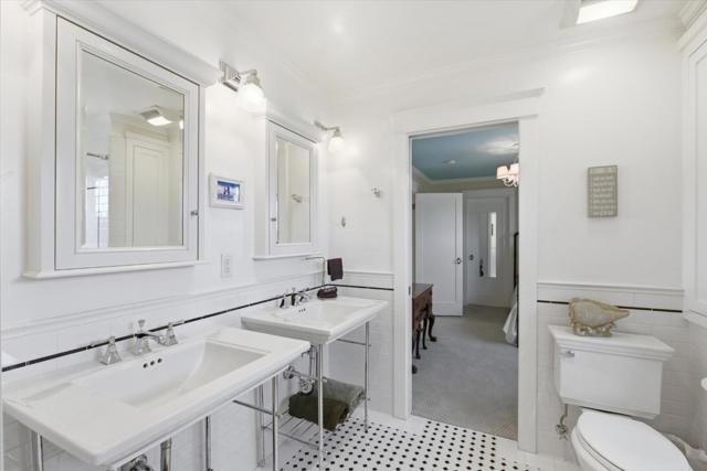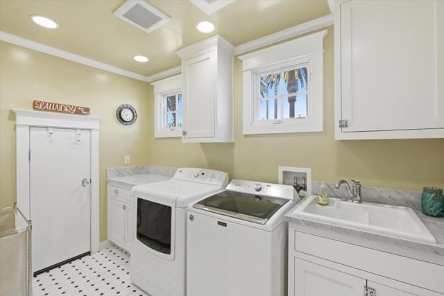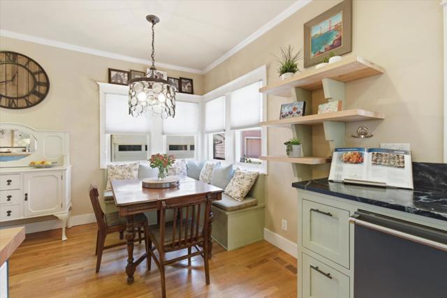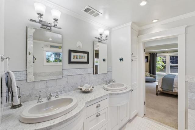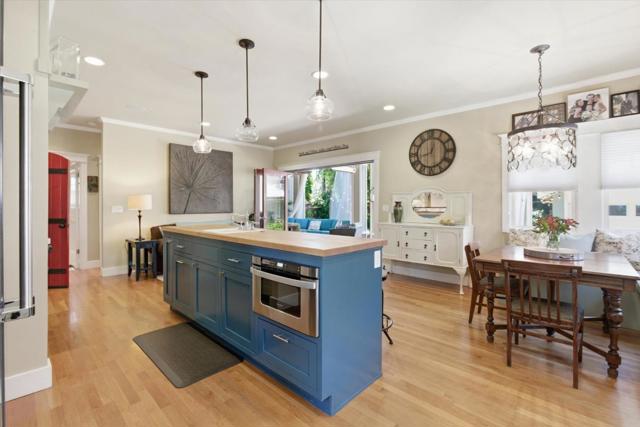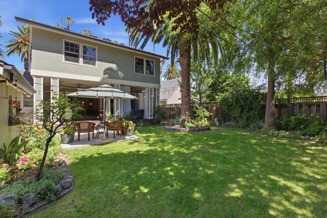 Situated in the heart of historic Palm Haven, San Jose's iconic 1913 residence park community in Willow Glen. This exceptional home overlooks the signature greenbelt framed by soaring heritage palms. Extensively updated while preserving its vintage character, the home features warm hardwood floors, custom solid wood doors, vintage hardware, and period-inspired tilework. A formal entry with mosaic tile leads to a grand dining room with French doors opening to a charming side deck. The living room showcases a classic tile fireplace, complemented by a private study and main-level bedroom with adjacent bath. The chefs kitchen with high-end, Viking appliances, natural stone counters, and center island flows seamlessly into the family room and out to a remarkable covered deck with heaters, fans, sound system, and custom drapes; ideal for year-round entertaining. Upstairs offers spacious bedrooms including a serene primary suite. Finished basement with wine storage.