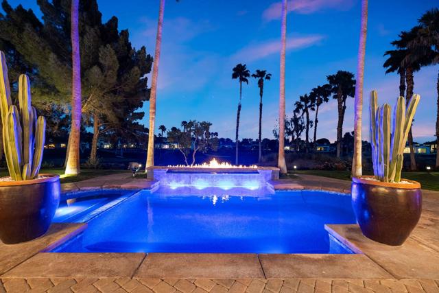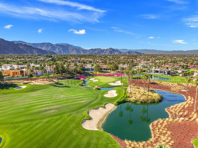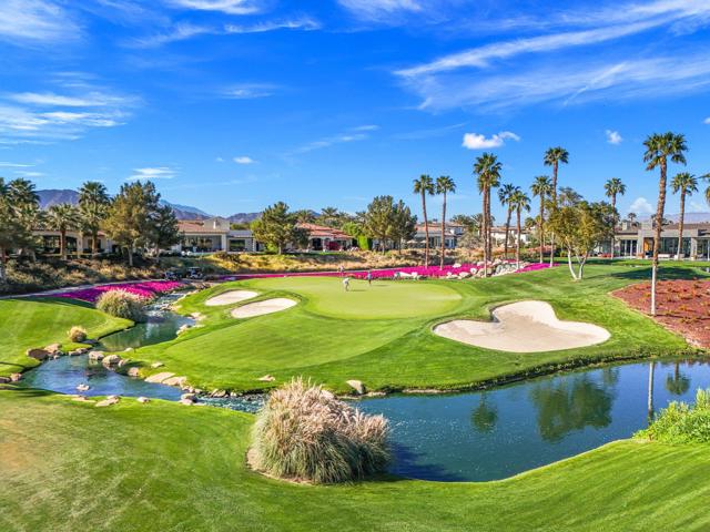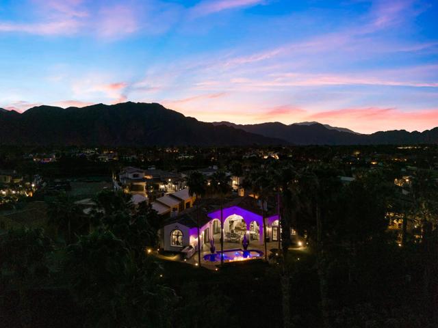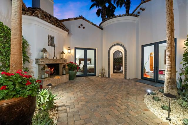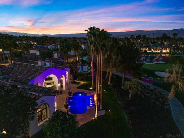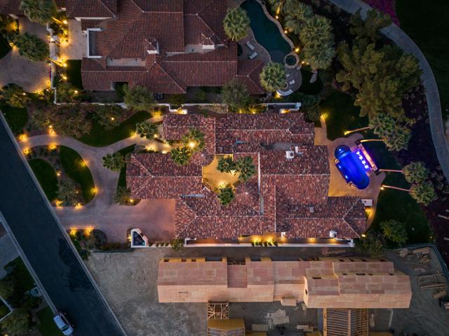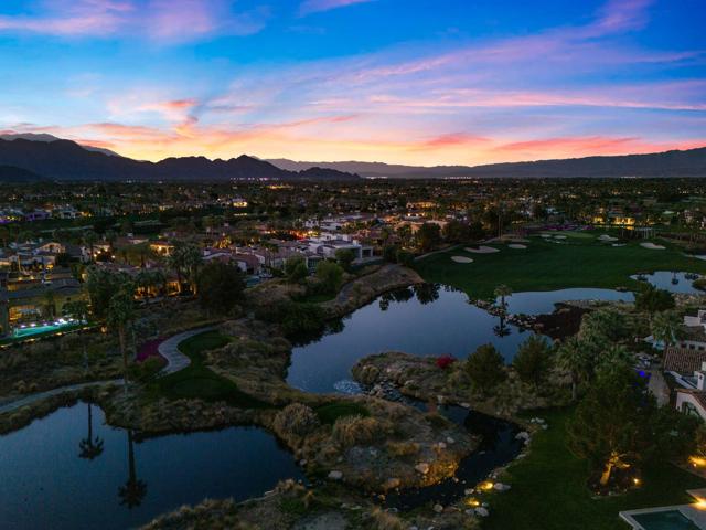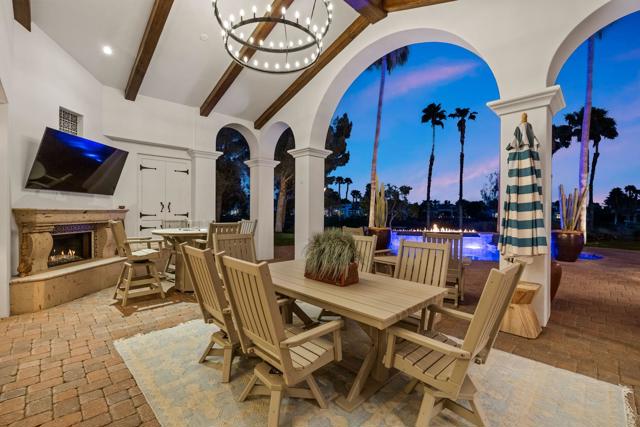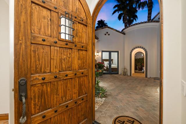 Welcome to your timeless estate nestled behind the gates of the prestigious Hideaway Golf Club, ideally positioned on the 16th green of the renowned Clive Clark Golf Course. Enjoy breathtaking panoramic views of cascading waterfalls and the tranquil creek that gracefully wraps around this signature hole--creating a setting of unmatched serenity and beauty.Recently remodeled with refined, high-end finishes, this exceptional residence showcases luxury countertops and Rohl plumbing fixtures throughout, blending modern sophistication with classic architectural elegance.Spanning approximately 4,201 square feet, this 4-bedroom, 4.5-bath estate sits on an expansive 17,424 square foot lot and has been thoughtfully upgraded and meticulously maintained for a truly turnkey experience. The home's superior craftsmanship is evident in every detail, featuring full-size exposed beams, soaring ceilings--many reaching 16 feet--solid wood doors, custom millwork, and finely crafted cabinetry throughout.The gourmet kitchen is a chef's dream, appointed with Wolf and Sub-Zero appliances, seamlessly opening to inviting living spaces designed for both grand entertaining and intimate gatherings. Five fireplaces, new designer chandeliers, and curated finishes throughout create a warm, old-world charm with a modern luxury edge.Additional highlights include an oversized 4-car garage with 18' x 9' doors, offering ample space for vehicles and storage.This is one of the best values for quality, location, and lifestyle within The Hideaway. Residents enjoy access to 36 holes of championship golf and a fully reimagined clubhouse featuring world-class amenities.Offered furnished per inventory. Easy to show.For private showings, contact Joe at 760-275-8800