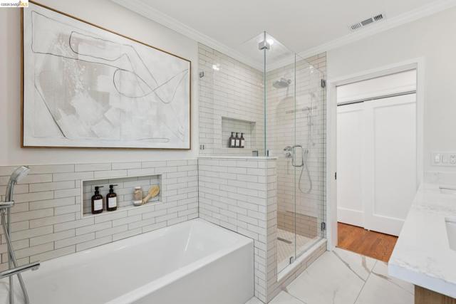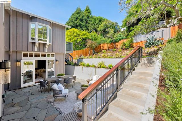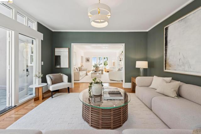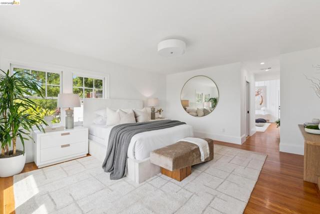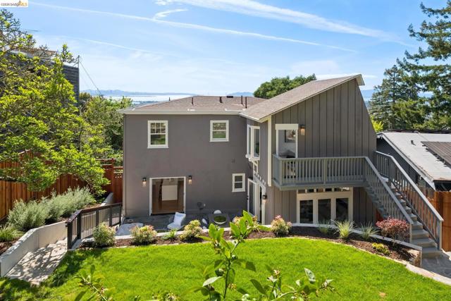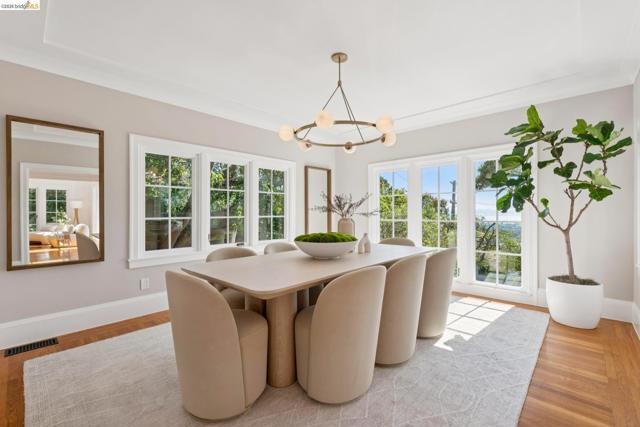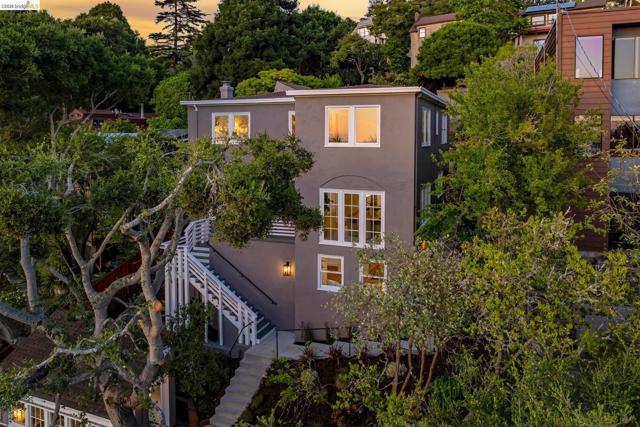 New Listing! Spectacular Berkeley Hills Traditional with dramatic views of the Golden Gate Bridge, Bay Bridge and San Francisco. The elegant living room flows seamlessly into a spacious family room which opens to a sun-drenched backyard patio. A formal dining room of exceptional scale easily accommodates large gatherings and adjoins to the spectacular gourmet kitchen. The kitchen wraps around a generous center island offering plenty of room for the chef to create while entertaining guests. French doors extend the living space outdoors to a meticulously landscaped, terraced garden featuring a patio and level lawn. Upstairs, two generously sized bedrooms share a well-appointed bathroom. The luxurious primary suite serves as a private retreat featuring sweeping views, a spa-like bathroom, and a tranquil sitting room. The lower level offers a versatile in-law space with a separate entrance, perfect for guests. Completing this gem is a detached two-car garage with a connecting office, ideal for today’s work-from-home needs. BESO score: 1 Open Sunday 2-4:30