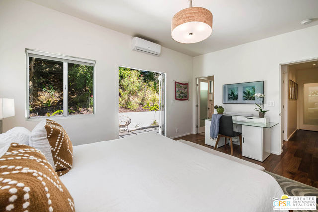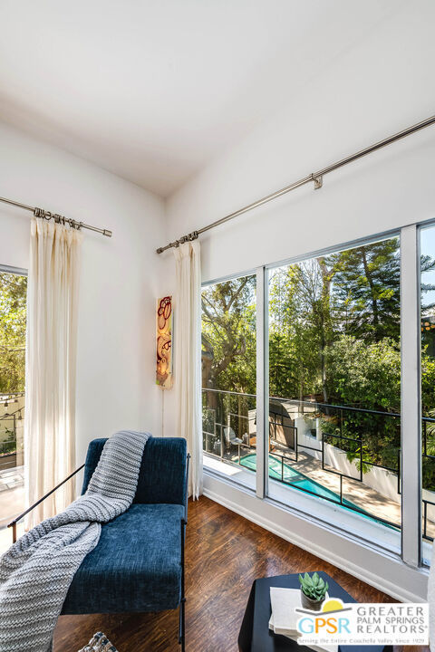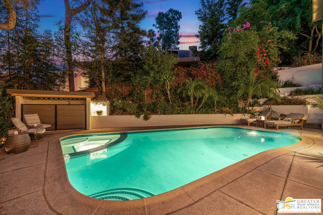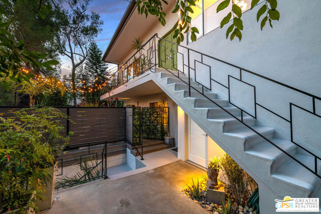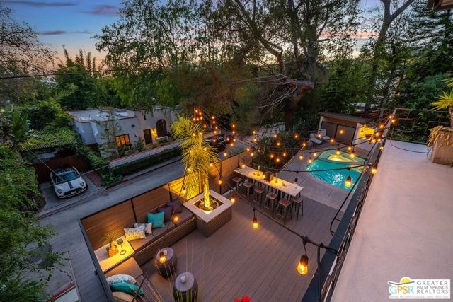 This ultimate Hollywood oasis lifestyle home, located in the coveted Hollywood Dell neighborhood, is within walking distance of the Hollywood Bowl and close proximity to many popular restaurants and shops. Enter into a large, bright and open main living area with high ceilings and walls of glass that offer views of the pool, mature landscaping and the Hollywood Hills. Entertain in an open cook's kitchen with professional appliances, stone counters and a cozy breakfast nook, all with a seamless flow to the adjacent dining area. When your preference takes dining and entertaining outdoors, step onto a wonderful deck with dining table and an intimate seating area around the fire pit. The primary bedroom upstairs opens to a beautifully serene patio with a set of exterior stairs with a design that evokes the Greek Isles and leads you to the pool and spa. A large 2nd bedroom on this floor is private and has its own en-suite bath. Step from the third bedroom, located on the ground floor, directly to the pool area, or double it as a party room for pool days. There is an excellent bonus room at this level that could be used as a home office or would be perfect for an art studio. Mature landscaping nestles the home into the hillside, and a path that leads to the top of the property brings you to an enchanting escape overlooking the hills. There are many smart home features, invaluable huge basement storage, laundry room and 2 car garage. This is an extraordinary property that offers many lifestyle options. Hurry! First showings at open house Sunday, April 19, 1 - 4pm.