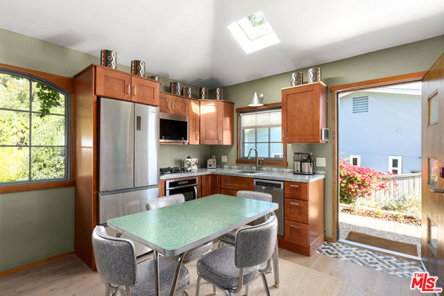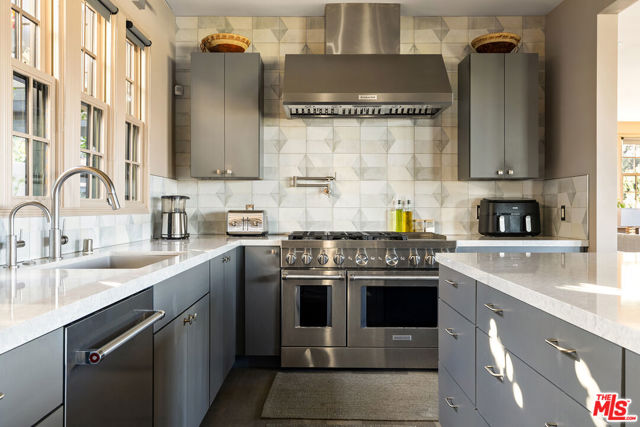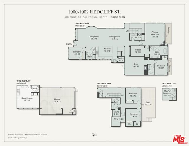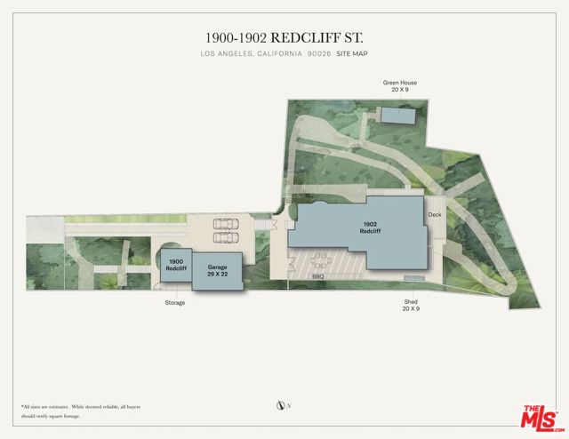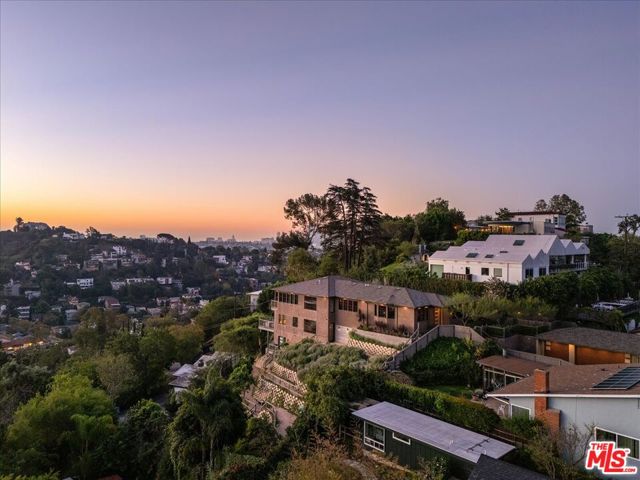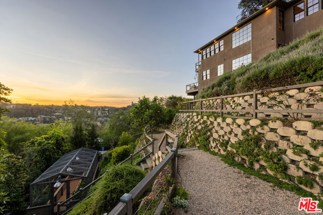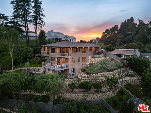 A true Silver Lake gem. The private estate at 1902 Redcliff St includes a main residence with 5 bedrooms and 4 baths, a legal ADU, a caretaker's unit with a 3/4 bathroom, and a three-car garage. All in, there are 4100 sf of living area set on four lots totaling nearly 20,000 sq ft. It is gated, removed from the street, and protected by security cameras and a video entry system. There are breathtaking views of the Silver Lake reservoir, downtown Los Angeles, Mount Baldy, and the fireworks at Dodger Stadium. There is a working greenhouse, a citrus orchard, a lavender hillside, a succulent garden, bountiful California-native plants, and ample room for a pool. The estate exudes the elegance, grace, and serenity of an authentic urban idyll, yet it is flexible enough to accommodate an extended family, numerous guests, and resident staff. The interiors are modern, with a rational, easy-flow aesthetic. A formal living room leads to a spacious dining room and an enormous chef's kitchen with a deluxe suite of KitchenAid appliances, Omega cabinetry, and a walk-in pantry. The den has mahogany paneling, a surround-sound theater system, and a sleek gas fireplace. The vine-shaded courtyard intuitively extends the kitchen and den, providing an enchanted outdoor dining and entertainment space for as many as thirty guests. There is a built-in gas grill, lengthy granite countertops, and a commercial gas heater. The large primary suite has a generous walk-in closet, a light-filled bath with double sinks, a custom shower and pedestal soaking tub. There are two additional bedrooms on the main floor, each with an adjacent 3/4 bath. One has a private deck with a view, and the other opens to the courtyard. A laundry room with restaurant-grade storage and a utility sink completes the main floor. A floating marble staircase leads to two lower-level bedrooms, a 400-bottle wine cellar, and a cedar sauna. The adjoining 350 sf deck has sweeping views, outdoor living and dining, and a gas fire pit. There is a caretaker's unit with its own entrance, a kitchenette, and a 3/4 bath. The charming, private ADU has a full kitchen, 3/4 bath, and its own address--1900 Redcliff Street. Its vine-framed windows overlook the front yard's citrus and fig trees. The custom-built estate was completed in 2023. There are numerous upgrades, including a state-of-the-art fire sprinkler system, energy efficient double insulation, a capacious finished attic, tankless water heaters, Toto Neorest toilets, voice-activated sound and lighting systems, CAT 6 wiring and a 650-gallon rainwater retention system. Plans, permits, surveys, and a detailed list of attributes can be provided upon request. An additional 2,700 sq ft structure may be built on the property.