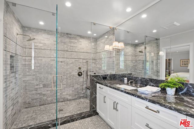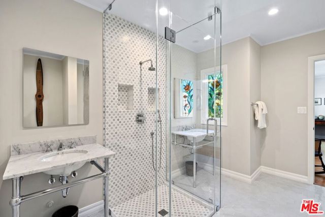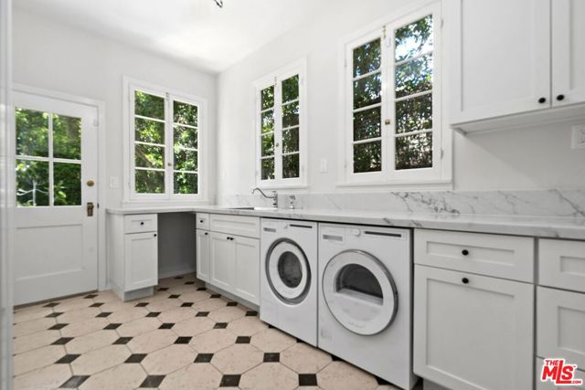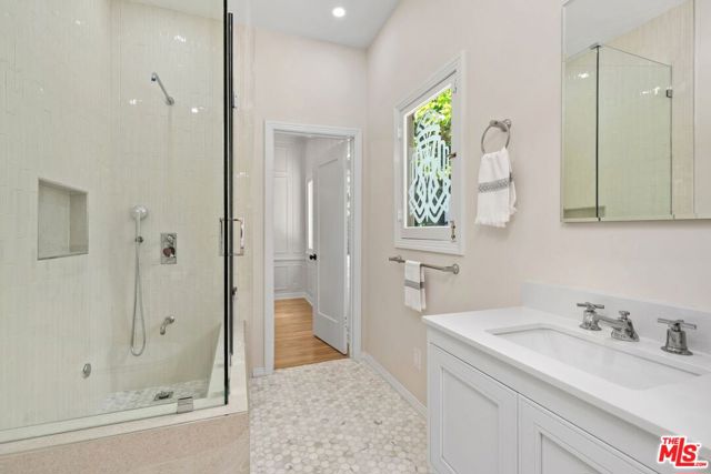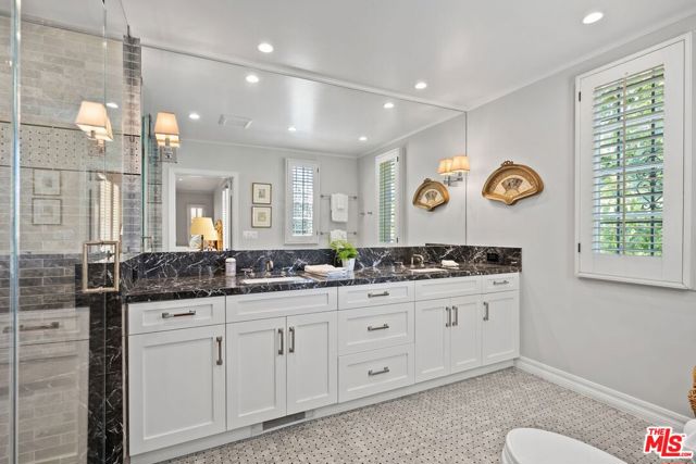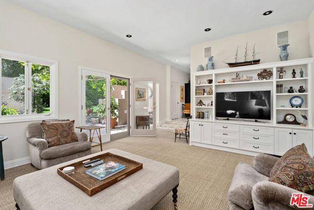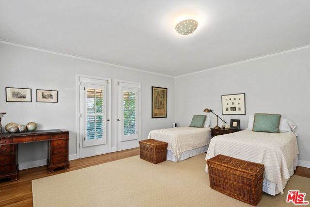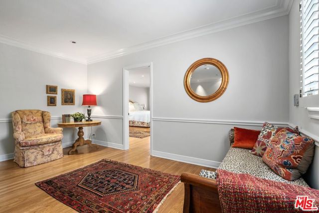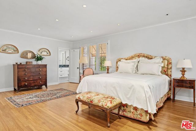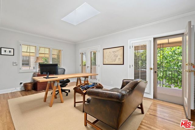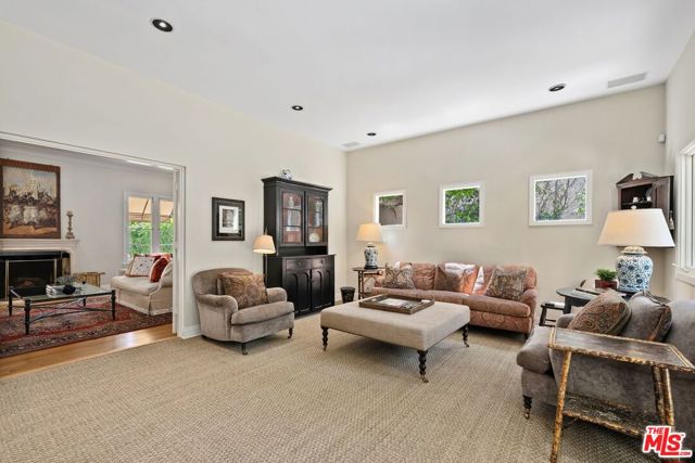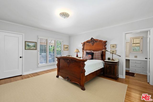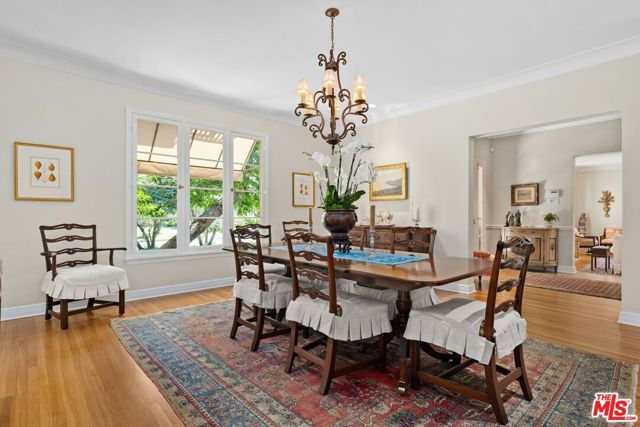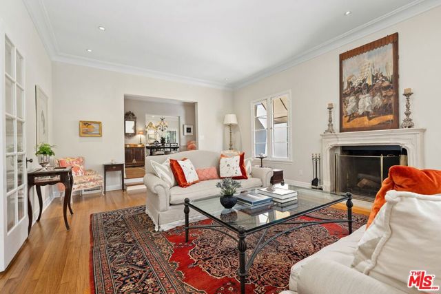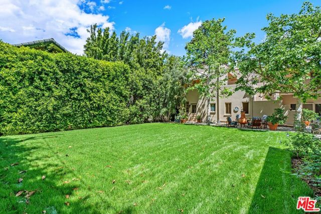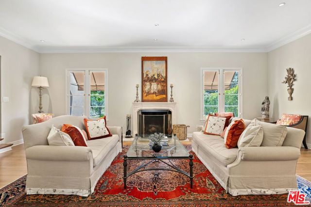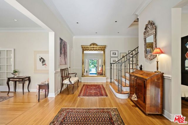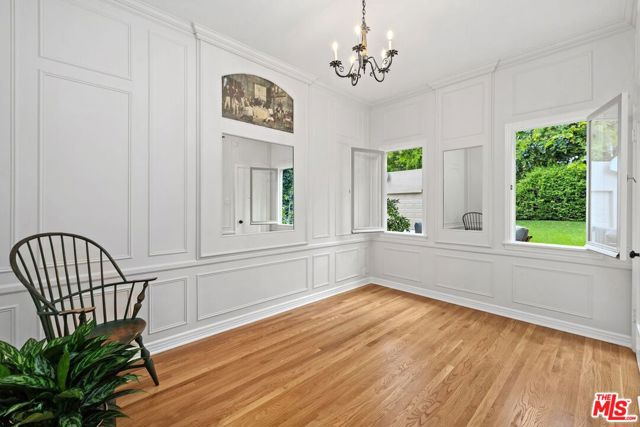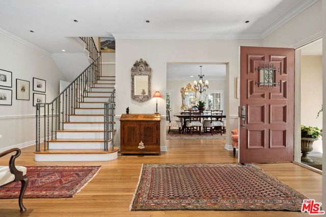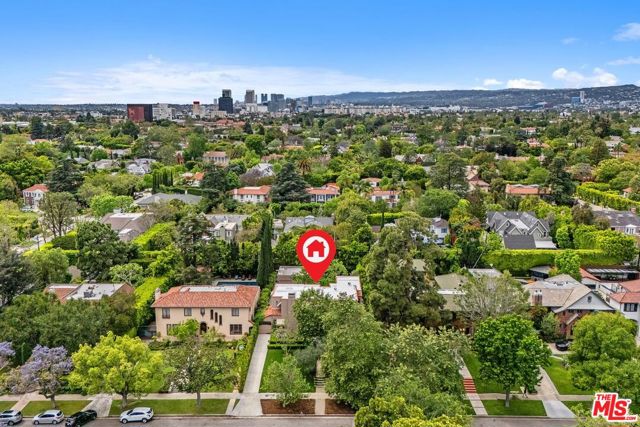 Among the Sycamores and behind iron gates, this Montecito-inspired retreat just blocks from Larchmont Village evokes a refined romance with effortless indoor-outdoor flow. A gracious center hall leads to an elegant dining room with access to side patio as well as a step down, sunlit formal living room with three exposures. The living room opens to a warm, inviting family room with built-in bookshelves and garden access. Enjoy a peaceful, lush backyard with mature trees, patio and recreational space designed for easy enjoyment today with opportunities to reimagine overtime. The generous eat-in cook's kitchen offers abundant counter space and storage, connecting seamlessly to family room on one end and a spacious laundry room with outdoor access on the other. A bright downstairs bedroom, full bath and powder room complete the main level. Upstairs, a serene primary suite features two large closets, an updated bath and a sun-drenched office with terrace overlooking the rear tree canopy. Two additional bedrooms and a remodeled bath sit across the landing. All of this, within close reach of neighborhood cafes, boutiques, and everyday essentials that define Windsor Square HPOZ's enduring appeal.