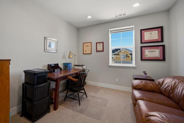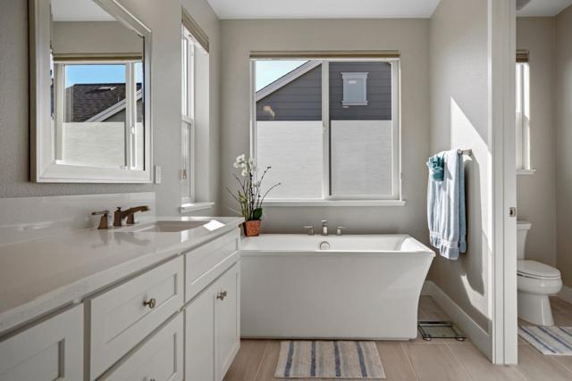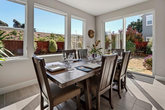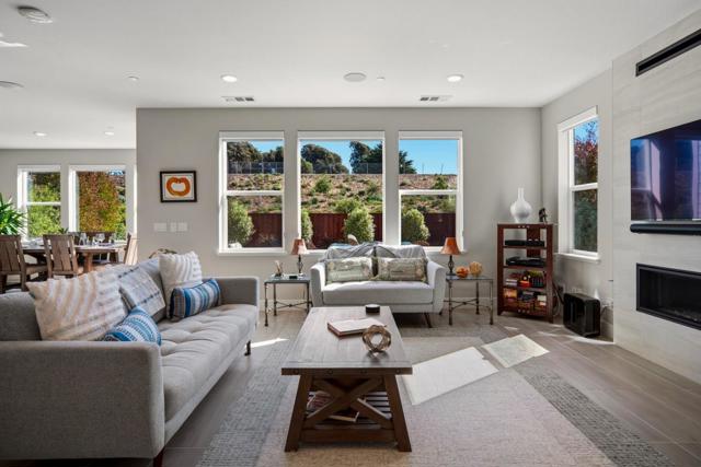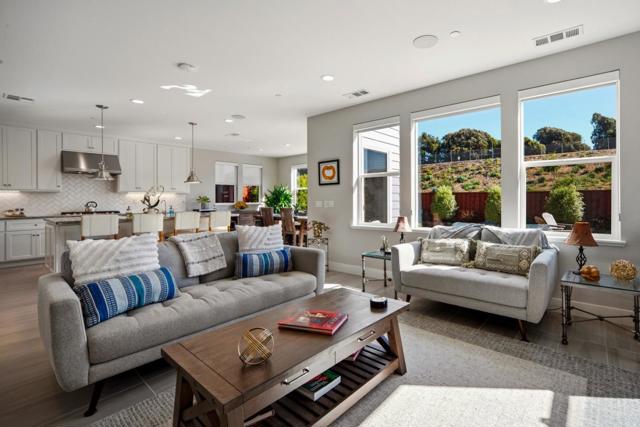 If your desire is to purchase a residence at The Dunes with generous, private views, this home will not disappoint. From the moment you step inside you will be captivated by the unparalleled views from the sunny back patio with firepit and stone slab pathway. The property is in a quiet, rarely available setting at The Dunes with Hilltop Park and its adjoining puppy park nearby. The home is elegantly finished. A statement chandelier in the soaring entryway serves as starting point for further refinements in this gracious home. The kitchen is a dream with upgraded round-edge granite counter tops, white cabinets with subway tile backsplash, vintage industrial pendants, reverse osmosis water, and Kitchen Aid appliances. There is a linear gas fireplace with blower, and a surround sound system downstairs. Upstairs features include a stair nook with built-in desk, glass barn door at the loft / den, upgraded carpeting, upgraded tile on the primary shower floor, primary mirrored closet, and upper laundry cabinets. The home has upgraded interior paint, window coverings throughout, full-house Rain Soft water, EV charger, backyard irrigation, and Sunrun solar (leased). From this home you will enjoy a 15-minute walk to Fort Ord Dunes State Park.