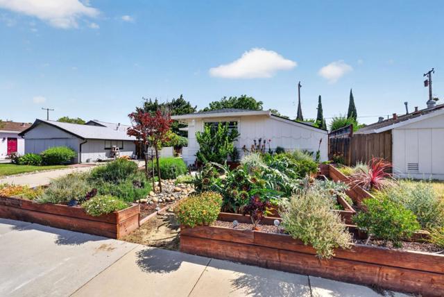 Intentional design and everyday comfort come together in a home that feels both welcoming and refined. At the entry, a mature citrus tree loaded with fruit adds character and a natural focal point, complemented by drought-conscious landscaping that balances beauty with easy upkeep. Inside, a large, thoughtfully arranged kitchen anchors the main living space, offering an island workspace, extensive storage, smooth countertops, and modern flooring, with an open orientation toward the rear yard that keeps indoor and outdoor living visually connected. Out back, the property transforms into a private outdoor setting with layered greenery, a dining patio, and distinct zones for gathering and recreation, while a shaded structure adds a quiet escape for reading or relaxation. The front grounds continue the low-maintenance theme with raised planting beds and climate-friendly landscaping, and dual gate access enhances security while supporting a pet-friendly environment. Throughout the interior, window coverings provide adjustable light and privacy in every room. Comfort is enhanced by central heating and air conditioning, generous garage storage, and a location offering convenient access to major employment hubs, shopping, and commuter routes.