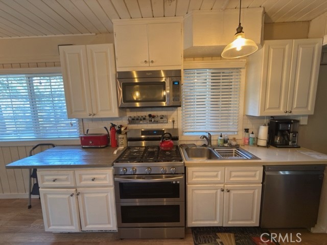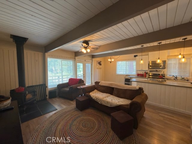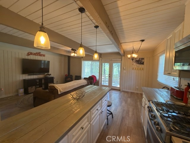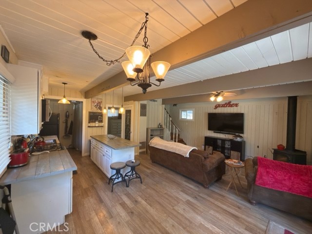 Cabin offers an updated Kitchen along with top of the line appliances, open floor plan with wood burning stove in the living room, 1 bedroom and 1 bath located on the main floor. French doors that lead out to a wrap-around deck complete with an out door refrigerator and freezer great for entertaining on those warm summer nights in Green Valley Lake.
