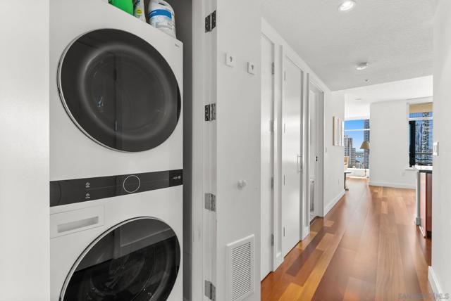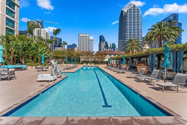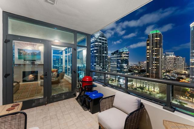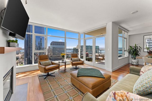 Welcome to Residence 2004 at Grande South at Santa Fe Place — a sophisticated high-rise retreat in the heart of Downtown San Diego. Perched on the 20th floor, this beautifully appointed residence showcases sweeping views of the San Diego skyline and shimmering San Diego Bay, offering a dynamic backdrop from day to night. Floor-to-ceiling windows flood the space with natural light, while a cozy fireplace adds warmth and elegance to the main living area—perfect for relaxing or entertaining. Grande South is known for its resort-style amenities, including a newly renovated lobby, state-of-the-art fitness center, lap pool and spa, steam room, sauna, and beautifully maintained outdoor spaces. Residents also enjoy 24-hour concierge service, security, and secure parking, creating a seamless and elevated living experience. Located just moments from the Waterfront, Little Italy, and the Gaslamp Quarter, this residence offers the ideal blend of luxury, convenience, and vibrant urban living. Experience the best of downtown living with breathtaking views, premier amenities, and an unbeatable location.