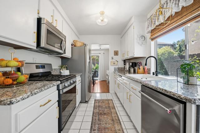 Tucked away in the heart of North Mira Mesa, this hidden gem feels more like a detached home, offering privacy and charm with only one shared wall. Step inside to discover a thoughtfully designed space featuring light and bright downstairs living room with hardwood floors and an extra large sliding glass door. The kitchen has granite countertops, stainless steel appliances and updated modern fixtures. With a half bath powder room on the ground floor also with updated modern fixtures. Upstairs you will find all three spacious bedrooms, two full bathrooms and views of the Penasquitos Canyon Preserve from the second bedroom. The primary suite offers two closets and double sinks. The meticulous backyard, complete with a covered patio and additional side covered patio, invites you to relax or host gatherings in style. Plus, the attached two-car garage provides plenty of room for storage and includes a convenient laundry area. This community has it all: a solar-heated pool, basketball court, multiple pocket parks and a walking path, perfect for making the most of sunny San Diego days. With parks, schools, and popular restaurants just minutes away, low HOA dues (Just $158 per month) this home is ideal for nature lovers who still love to be close to all of the conveniences offered in Mira Mesa. Don’t let this best-kept secret slip away!