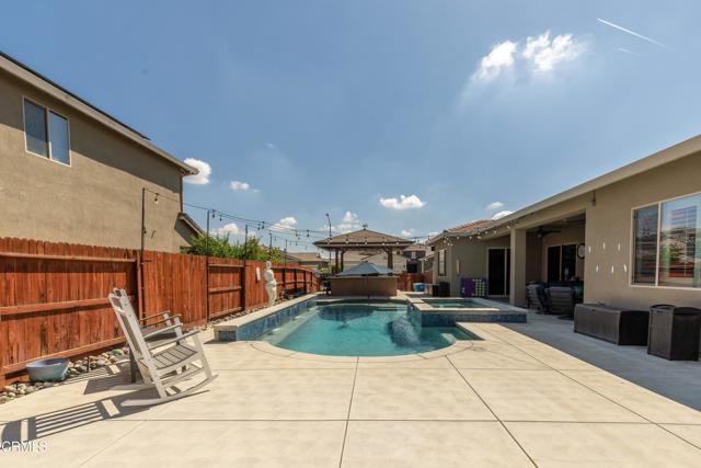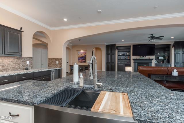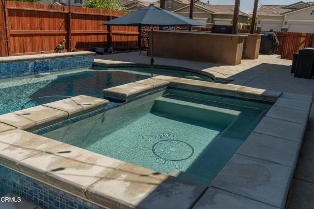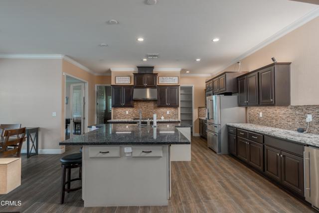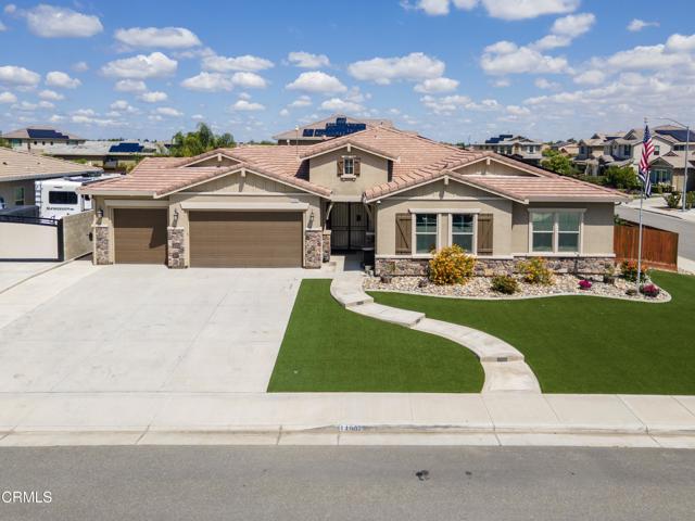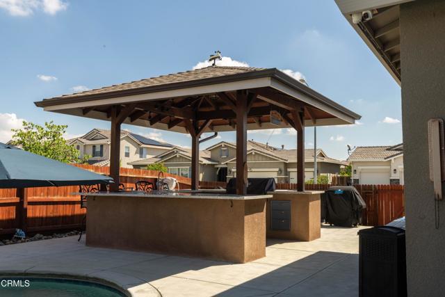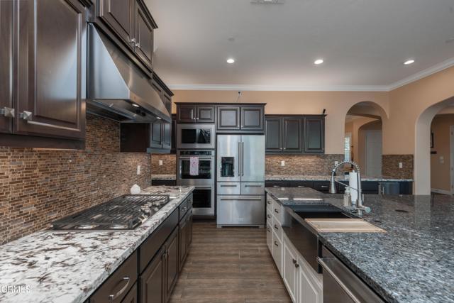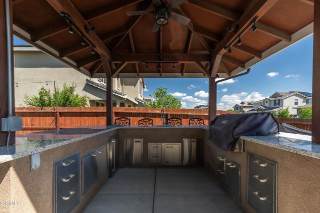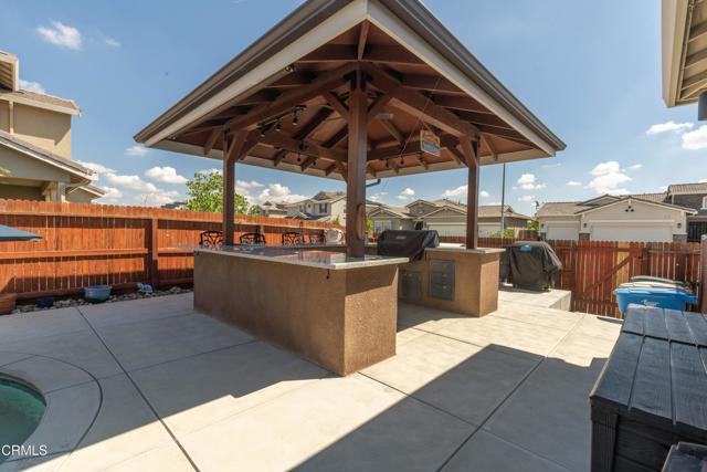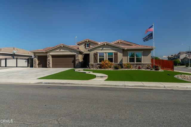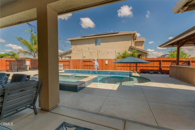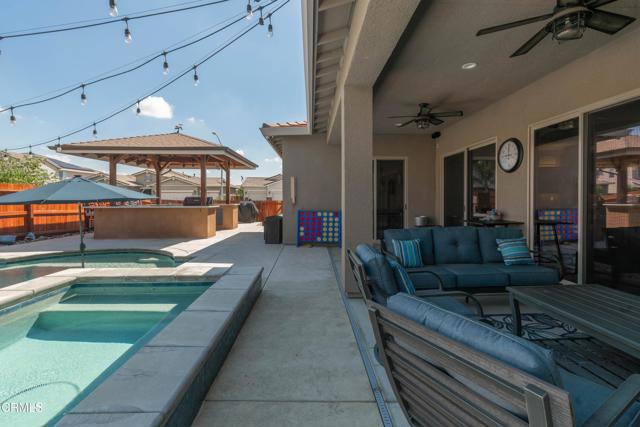 Stunning home in Stockdale River Ranch w/ unbelievable upgrades and high-end amenities. (See attached List). The open floorplan features a huge family room w/ tons of built-in cabinets, an impressive fireplace and double slider doors, plus a kitchen dining area, a formal dining room, and a game room/office. There is wood-look tile in most of the living areas, plantation shutters, crown molding, owned solar (w/ 58 panels and no true up) and a 4-car garage w/ epoxy flooring and a passthrough door. The gourmet kitchen includes a huge island w/ a sink, granite counters, decorative tile backsplash, Kitchen Aid appliances, double ovens, a walk-in pantry and more. You will love the additional prep kitchen. The highlight of the property is the backyard w/ a spacious covered patio, a sparkling saltwater pool and spa, an amazing outdoor kitchen and gazebo (w/ construction quality similar to the home) and a turf lawn. The relaxing master suite has all of the amenities you would expect.