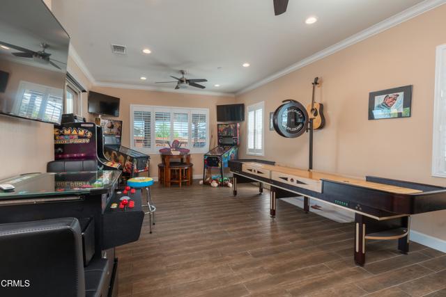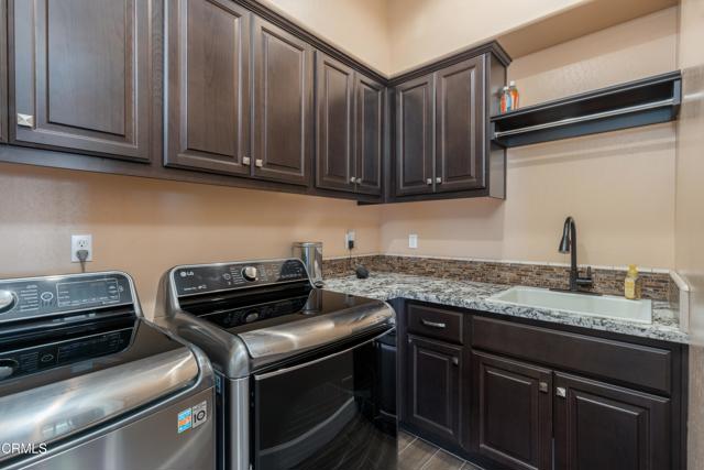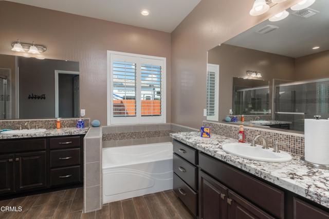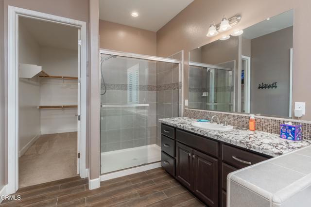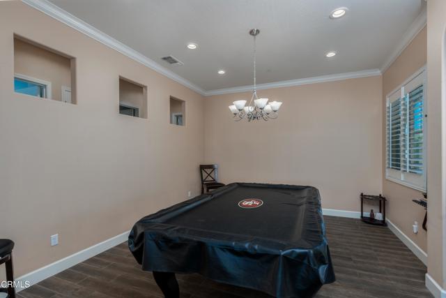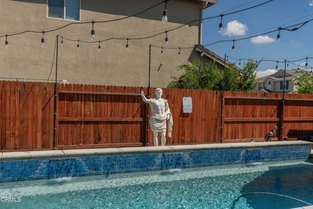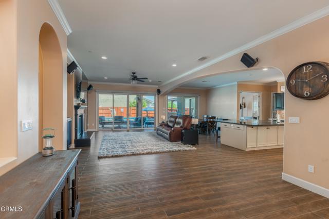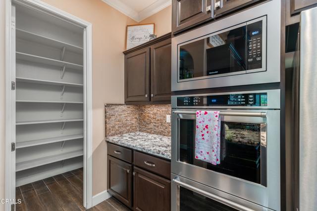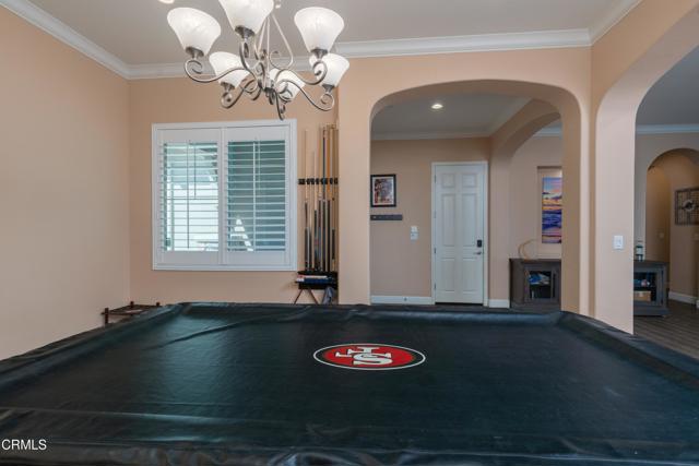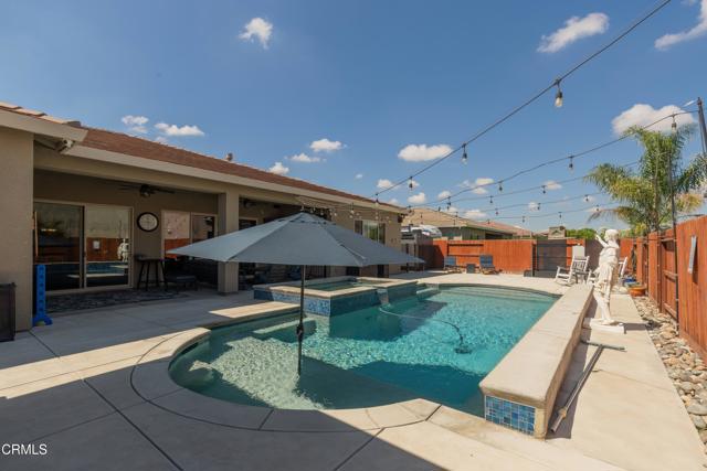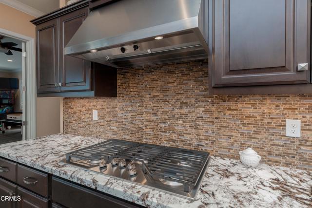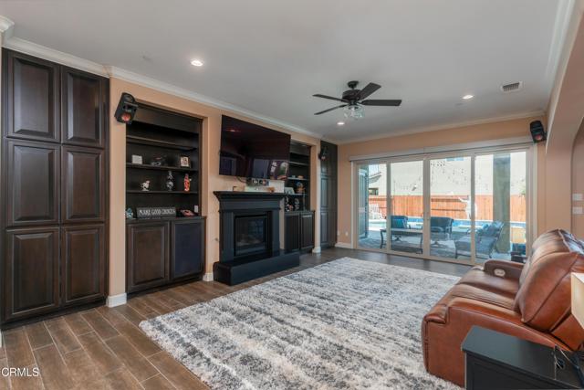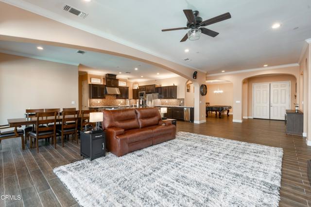 Stunning home in Stockdale River Ranch w/ unbelievable upgrades and high-end amenities. (See attached List). The open floorplan features a huge family room w/ tons of built-in cabinets, an impressive fireplace and double slider doors, plus a kitchen dining area, a formal dining room, and a game room/office. There is wood-look tile in most of the living areas, plantation shutters, crown molding, owned solar (w/ 58 panels and no true up) and a 4-car garage w/ epoxy flooring and a passthrough door. The gourmet kitchen includes a huge island w/ a sink, granite counters, decorative tile backsplash, Kitchen Aid appliances, double ovens, a walk-in pantry and more. You will love the additional prep kitchen. The highlight of the property is the backyard w/ a spacious covered patio, a sparkling saltwater pool and spa, an amazing outdoor kitchen and gazebo (w/ construction quality similar to the home) and a turf lawn. The relaxing master suite has all of the amenities you would expect.