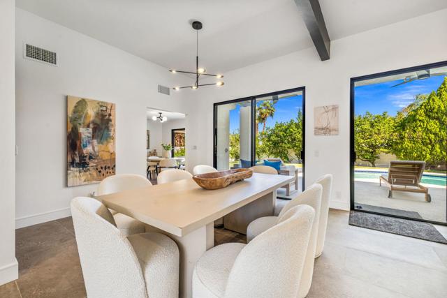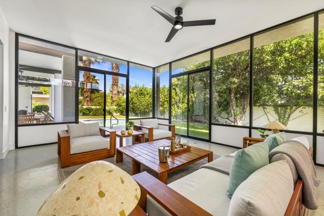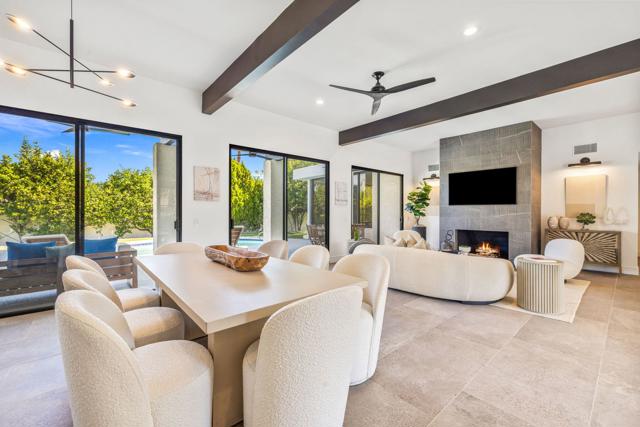 INDIAN WELLS: **OPEN THIS SATURDAY 4/18 2:00PM-3:30PM. COME SEE!!** Fully reimagined and thoughtfully redesigned, this modern Indian Wells residence delivers clean lines, open living, and seamless indoor-outdoor flow on an oversized lot in a prime south-of-111 location. New custom glass doors frame dramatic views of Eisenhower Mountain and flood the home with natural light, setting the tone for a bright, contemporary interior.The heart of the home is a beautifully updated kitchen featuring stone countertops, custom cabinetry, open shelving, and high-end appliances, all flowing into an expansive great room anchored by a striking modern fireplace and a sleek granite-wrapped bar with integrated wine fridge--perfect for entertaining.Three large sliding glass doors open to the backyard, enhancing the connection between interior and exterior living. The spacious primary suite offers direct access to a versatile outdoor atrium space--ideal as a gym, art studio, or potential fourth bedroom/casita.All bathrooms have been remodeled or expanded with a clean, modern aesthetic, complementing the home's architectural character. Additional upgrades include new windows throughout, a new electrical panel with EV capability, and a reworked roof with foam and seal.Out back, enjoy a private, lush setting with a resurfaced saltwater pool, mature landscaping, and multiple seating areas--perfect for relaxing or entertaining.Located in non-gated Indian Wells, residents benefit from the coveted Indian Wells Resident Card, offering preferred access and discounts at the Indian Wells Golf Resort, tennis, dining, and more.Move-in ready, design-forward, and ideally located--this is exceptional value in Indian Wells.