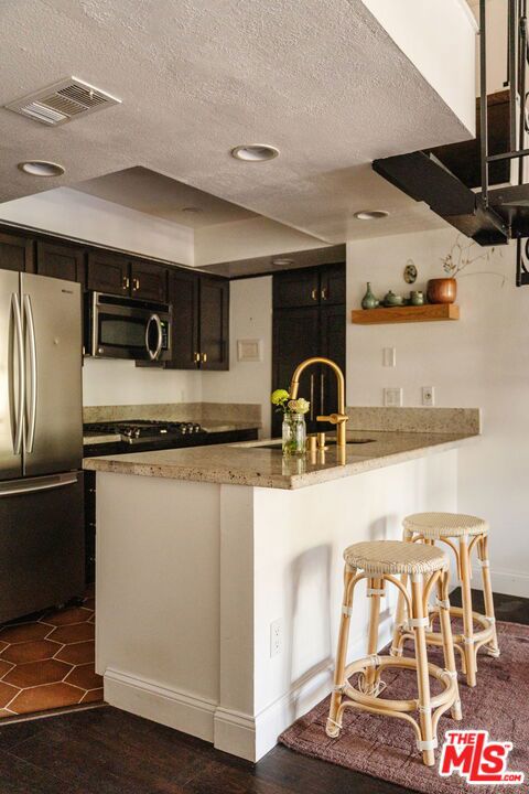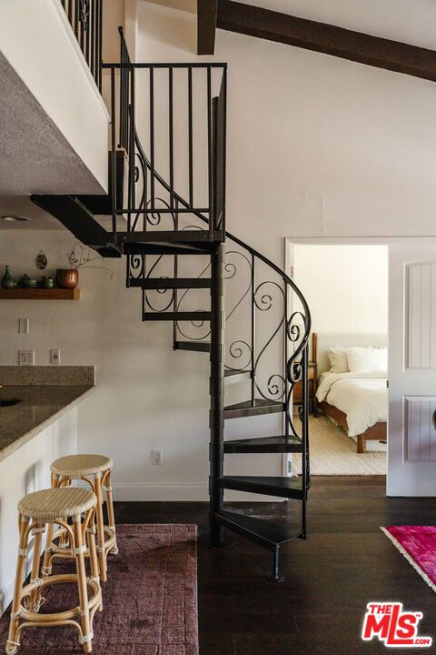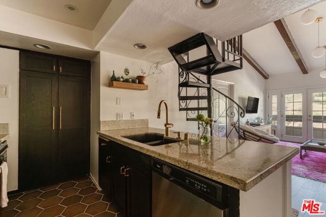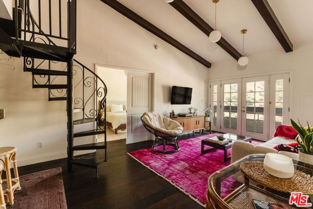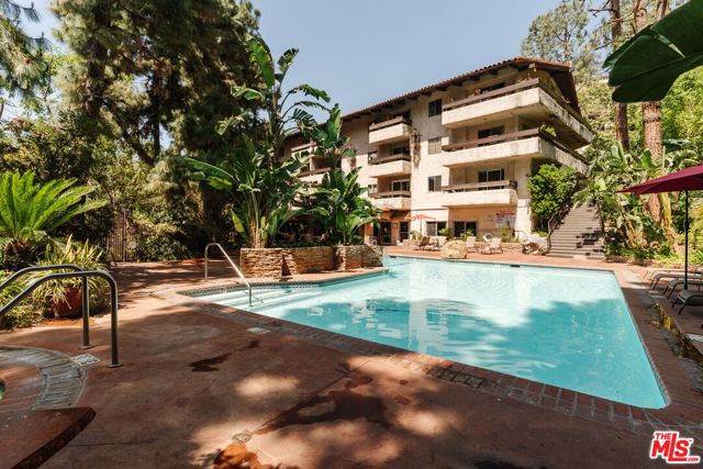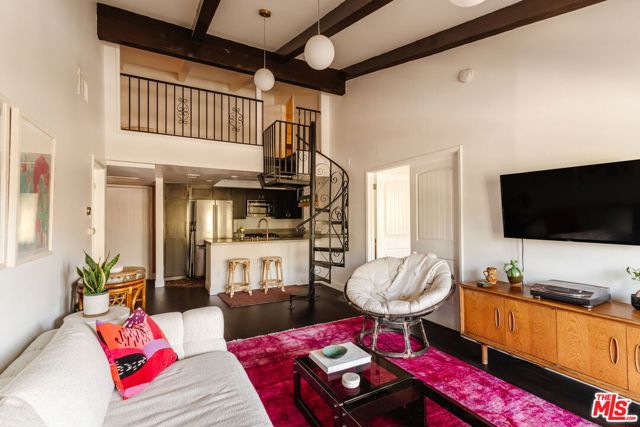 Welcome to 2700 Cahuenga Blvd #4319, a timeless Spanish retreated bathed in golden afternoon light with serene hill views. This soulful retreat offers an inspiring blend of updated warmth and character. The chic kitchen features wood cabinetry with ample storage, stylish hexagon tile, and a welcoming breakfast bar that ties the living room together seamlessly with new floors throughout. French doors open to a private balcony for sunset moments, while soaring vaulted ceilings with exposed beams elevate the living space. Two spacious bedrooms include an oversized primary suite with a remodeled bathroom and walk-in closet. A dramatic spiral staircase leads to a versatile loft, ideal as an artist's studio, music space, or creative escape. Complete with in-unit laundry, brand new AC, assigned parking and ample guest parking, and HOA dues covering key utilities including internet, cable, water, trash and earthquake insurance. A true Hollywood gem, offering on-site pools, spas, tennis courts, dog park, and gated entry. Tucked in the Hollywood Hills, just moments from the energy of Hollywood, Studio City, and beyond. This is a refined haven for creatives seeking both inspiration and ease.