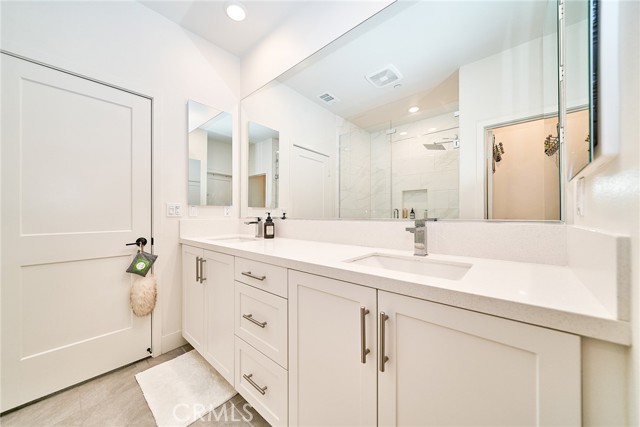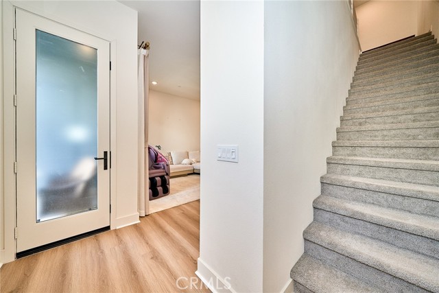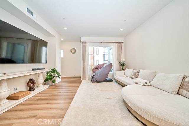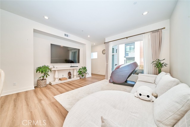 The well-designed floor plan includes three spacious bedrooms and beautifully appointed bathrooms, highlighted by a highly desirable entry-level bedroom and full bath—perfect for guests or a private office. Energy efficiency is elevated with fully paid solar panels, while outdoor enjoyment awaits on the sunny private patio. An attached two-car garage adds everyday convenience. Located within the highly regarded Tustin Unified School District and just minutes from premier shopping and dining at The District, this home offers an exceptional combination of luxury, comfort, and prime location.