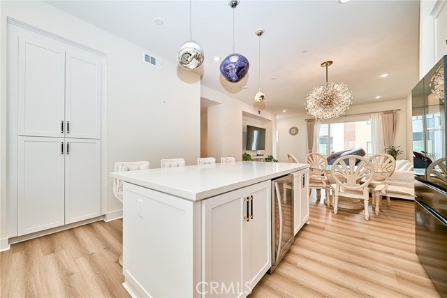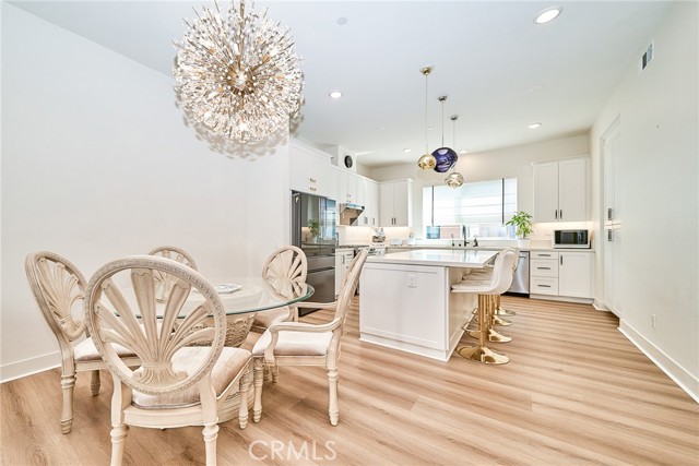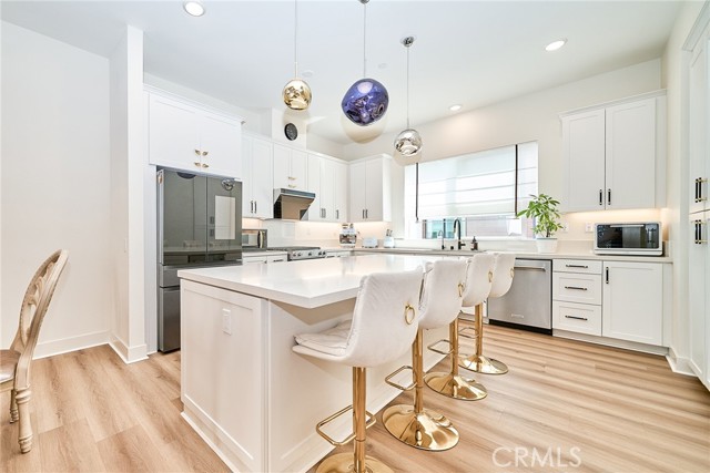 Step into award-winning luxury at Luna in The Landing at Tustin Legacy. This stunning, light-filled contemporary home showcases modern elegance with dramatic vaulted ceilings and a seamless open-concept design ideal for both upscale entertaining and everyday living. Extensively upgraded throughout, the home features designer chandeliers and enhanced lighting, upgraded flooring across all levels, and a fully installed water softener with a whole-house filtration system. The kitchen and bathrooms have been thoughtfully renovated with high-end finishes, including custom cabinetry and spa-inspired walk-in showers, complemented by sleek quartz countertops and premium custom shades that enhance the bright, airy ambiance.