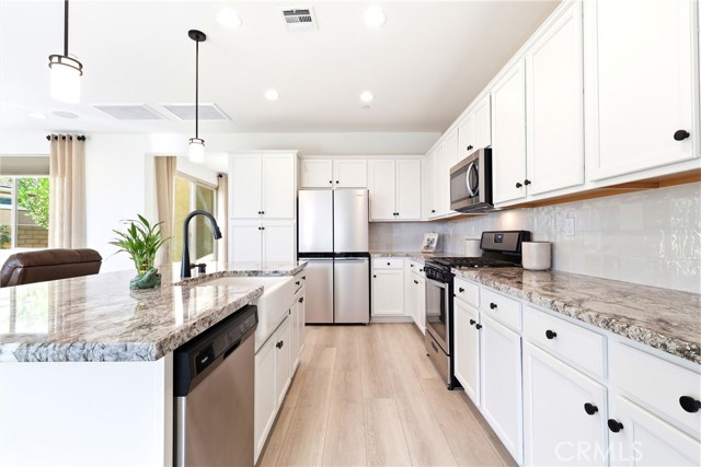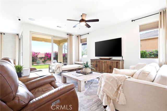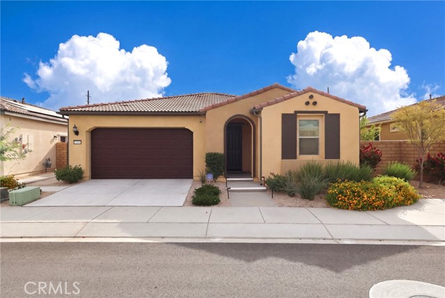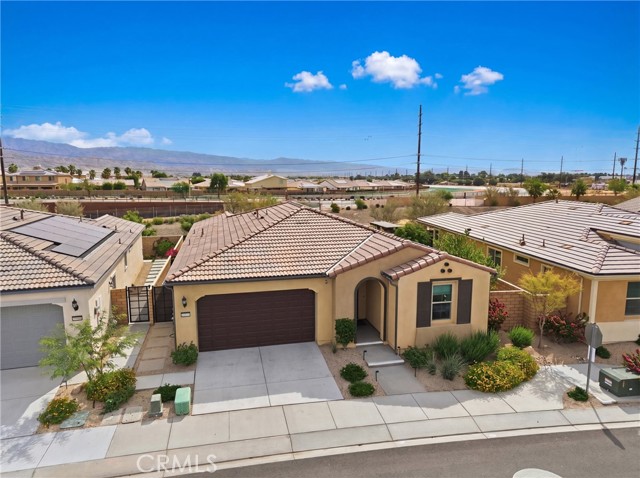 PAID OFF SOLAR • SOLD TURNKEY FURNISHED • PRIOR MODEL HOME • Offering energy efficiency and long-term savings with IID providing some of the lowest electric costs in the Coachella Valley. Welcome to 39906 Felicita Parkway, located in the highly sought-after Domani 55+ community in the heart of Palm Desert. This beautifully upgraded former model home is offered fully furnished (excluding mattresses & select personal items), presenting a rare turnkey opportunity to step into a refined, resort-style lifestyle from day one. Domani is known for its vibrant & social atmosphere, centered around a state-of-the-art clubhouse featuring a resort-style pool and spa, gym, pickleball courts, dog park, & a full calendar of monthly resident events designed to bring neighbors together. Inside, the builder spared no expense—investing over $150,000+ in premium upgrades throughout the home. You’ll immediately notice the upgraded laminate flooring, enhanced finishes, & a thoughtfully designed open layout filled with natural light. The kitchen is a standout, featuring white shaker cabinetry, upgraded countertops, and modern touches that flow seamlessly into the main living & dining areas—ideal for both everyday comfort & entertaining. Additional highlights include upgraded sliding glass doors, a built-in surround sound system, & the home is pre-wired for an alarm system & CCTV cameras. A unique feature of this property is the private outdoor courtyard, where the builder has confirmed the foundation is already in place for a potential third bedroom conversion, offering added flexibility and long-term value. The insulated garage is equipped with a split/mini duct system, allowing it to function as a gym, home office, or versatile flex space—perfect for your lifestyle needs. Step outside to your own private desert retreat. The backyard showcases thousands of dollars in improvements, including a covered California room, built-in BBQ with gas line, pergola, mature landscaping, oversized hurricane vase planters, an operable fountain, & paved side yard walkways. With no rear neighbors, you’ll enjoy unobstructed mountain views, creating a serene backdrop for both sunrise and sunset. The spacious lot also offers plenty of room to design and build your own custom pool and spa. This is more than just a home- it’s an elevated lifestyle within one of Palm Desert’s premier active adult communities. Don’t miss the opportunity to own a highly upgraded, move-in-ready property in Domani.