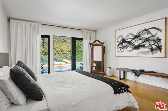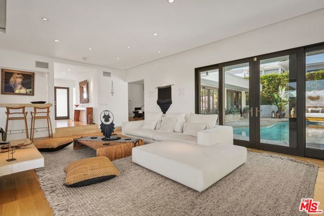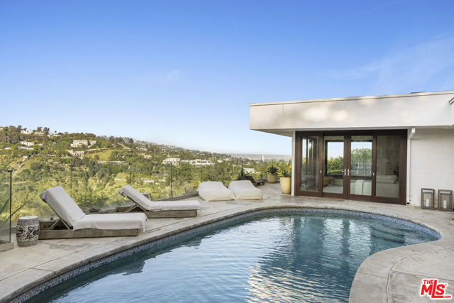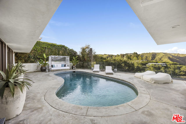 Privately positioned atop an exclusive cul-de-sac street in prime Beverly Hills Post Office, sits this single-level fully furnished and spacious Zen-like contemporary home. A storied setting that has housed numerous celebrities. This 2-bed + Den, 3-bath retreat has seamless indoor to outdoor flow with wide open concept living arrangements. Organic finishes and sliding doors lead you outside to an entertainer's haven with a sleek pool and comfortable cabana. In the kitchen, Viking appliances and wood countertops make a chef's job dreamy. The primary bedroom features a large walk-in closet and beautifully tiled dual sink bath with a cool step-down shower. Being surrounded by lush greenery creates a private enclave while the unforgettable canyon and city views remind you of the close proximity and access to one of the world's greatest cities. Sale values on this street have ranged from $16M-$35M. Take advantage of this opportunity to live where value has no limit and where you can design your vision for the future or enjoy this perfect perch as it is.