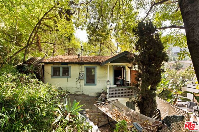 Do not disturb occupants. Tenant occupied and shown only with an accepted offer. Property is sold with tenant in place. Perched above the street in the hills of Mount Washington, this charming fixer offers a rare opportunity to reimagine a home in a serene, hillside setting. A series of steps lead you through lush landscaping and mature trees, creating a canopy of shade and a strong sense of privacy. A one car detached garage is located at street level, providing convenient off-street parking. Inside, a spacious living room welcomes you, offering great natural light and potential to create a warm, inviting gathering space. The layout features two generously sized bedrooms positioned on one side of the home, connected by a Jack and Jill bathroom. The kitchen is located toward the rear and opens to a covered patio, providing a natural extension for outdoor living. The hillside lot includes multiple flat areas, ideal for entertaining or creating peaceful outdoor spaces. This is a major fixer and is sold with tenant in place. The adjacent lot is also available for purchase, offering the potential to combine for nearly an 8,000 square foot lot. Ideally located near Figueroa St, just moments from some of Highland Park's best dining and shopping, including The Lodge Room, Checker Hall, Villa's Tacos, Highly Likely, Hippo, and Kitchen Mouse.