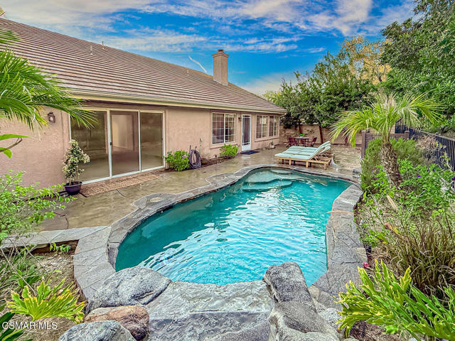 WELCOME HOME! A truly special property in Lang Ranch, this SINGLE-STORY 4-bed, 2-bath home built in 1995 is set on an elevated view lot and located in one of the area's most desirable neighborhoods with NO-HOA! Enjoy the perfect blend of privacy, location, and value in a beautiful community close to top-rated schools, parks, and scenic trails. Step inside to formal living and dining rooms offering vaulted ceilings and REAL wood floors. Both the family room and kitchen overlook a stunning, private backyard with POOL and soothing waterfall that creates a true resort-style retreat. The Primary Bedroom features sliding doors to the backyard, offering peaceful views and the calming sound of flowing water. The updated primary bathroom includes a stall shower, sunken tub, and an expansive walk-in closet. Three additional bedrooms and an updated full guest bathroom provide comfortable accommodations for family or guests. Lovingly maintained with mature landscaping, the home backs to open space, offers abundant natural light, and delivers exceptional privacy. Spacious 2-car garage with 220V EV charging outlet! Ideally located to sought-after Lang Ranch Elementary School. Come see why this home stands out!