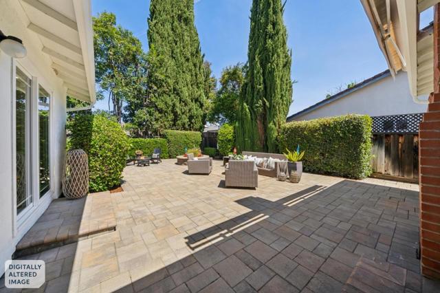 Welcome to this beautiful, thoughtfully updated 4bed, 2bath home with a gorgeous backyard. Ideal for entertaining guests, the formal living room overlooks the lush front yard & has abundant natural light, while the family room offers a cozy fireplace & space for watching movies or relaxing. The dining area sits near the kitchen & family room, and offers a view of the fabulous backyard. The updated kitchen features shaker cabinetry, expansive quartz countertops, gas stove, stainless steel fridge, microwave & dishwasher. 3 bedrooms offer flexibility for children, guests or a home office. Located at the back of the home, the private primary suite has sliding doors leading into the backyard. The recently updated bathrooms have great lighting, ample storage, tub and a walk-in shower. The low maintenance backyard is a special oasis. Pavers extend from the home out to a large entertaining space with a retractable awning that can be opened during the day providing shade for children playing, grilling & entertaining. A round, raised flower bed punctuates the paved space while perimeter trees & shrubs provide lush greenery. The green space is ideal for badminton, pickleball or a children's play area. This home is turnkey & has everything you need to enjoy a relaxing California lifestyle.
