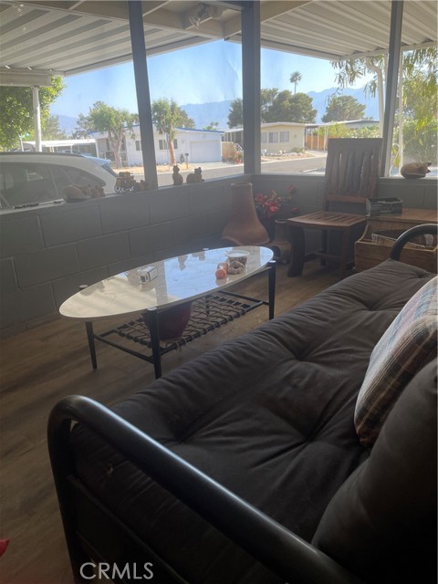 own the land and home with adu 1 bed 1 ba plus large single with .5 bath ready to complete as adu can easy be converted back to 2-bedroom, 1.5 bathroom home corner lot with circular driveway room for RV 2 covered carports all nestled in the serene Desert Crest Country Club—a vibrant 55+ community in Desert Hot Springs. Spacious Living: This 1,425 sq ft residence features an open floor plan complemented by an additional ~300 sq ft Arizona room, perfect for relaxation or entertaining guests newer central heating and air newer roof. Master Suite: The oversized master bedroom boasts high wood-beam ceilings and offers breathtaking views of the San Jacinto Mountains, providing a tranquil retreat. Outdoor Amenities: Situated on a desirable corner lot, the property includes a circular driveway, dual covered carports, and ample parking space for up to six vehicles. The covered backyard provides privacy and shade, ideal for afternoon relaxation. Community Features: Residents enjoy ownership of the land with no space rent and benefit from a low HOA fee of $143/month. The community offers unlimited golfing, 3 lakes, a hot spring mineral pool, Jacuzzis, a recreation room, pool tables, ping-pong, a library, a gym, and weekly activities, all surrounded by stunning mountain views. Owner is Lic Broker 1 bed 1 bath with a separate adu attached can rent one and owner occupie the other unit.