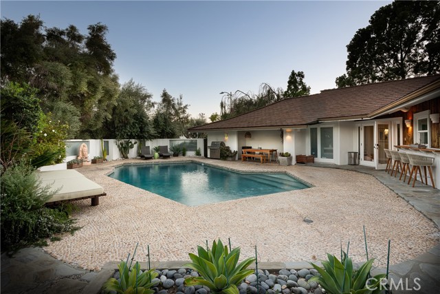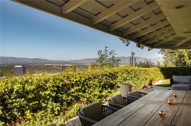 Tucked away on a quiet cul-de-sac in the coveted Royal Oaks neighborhood of Encino, this gated single-story residence offers a rare blend of privacy, design, with show stopping panoramic Valley views. Featuring 4 bedrooms and 4 bathrooms, the property unfolds as a true compound, set behind lush, mature landscaping and centered around a private courtyard that anchors the indoor-outdoor living experience.