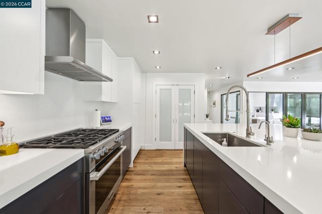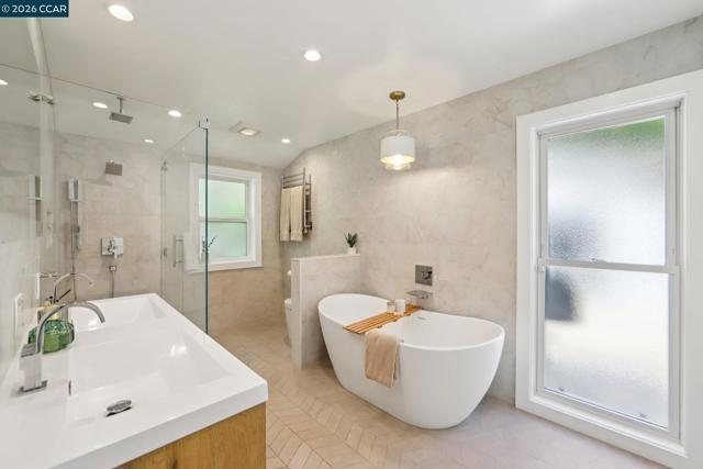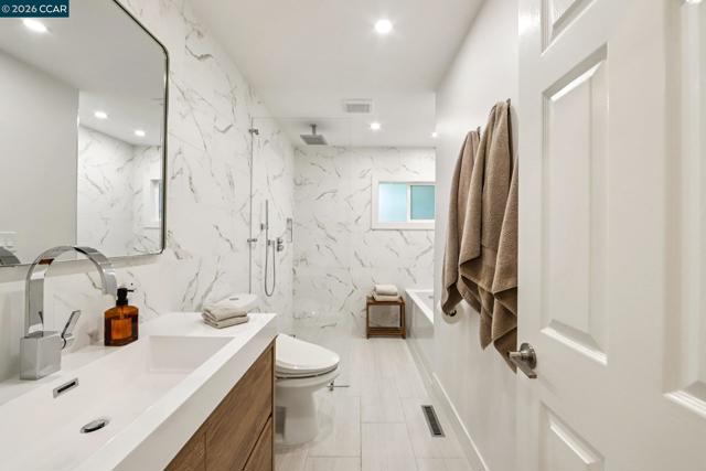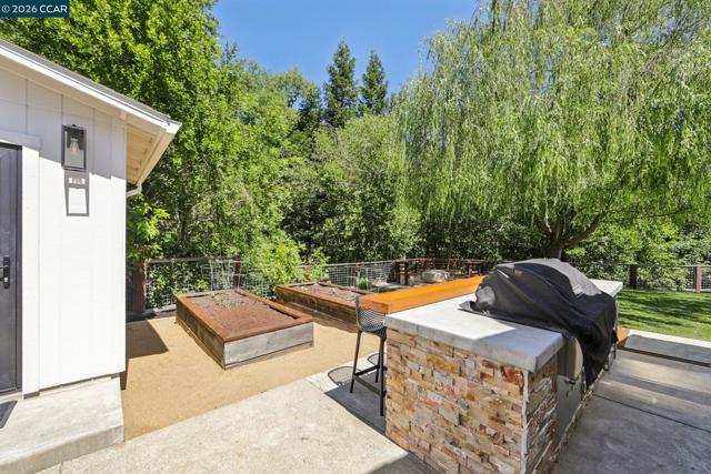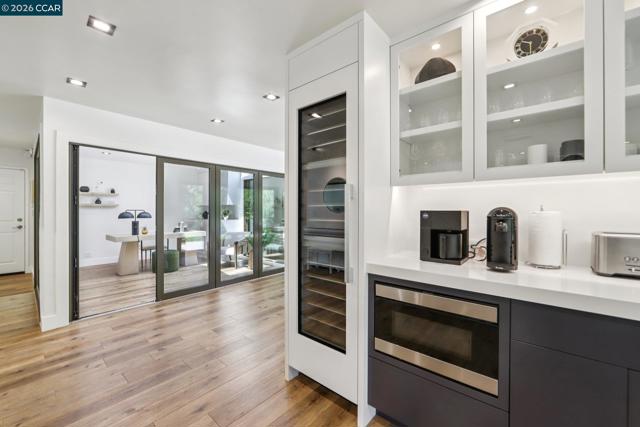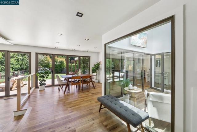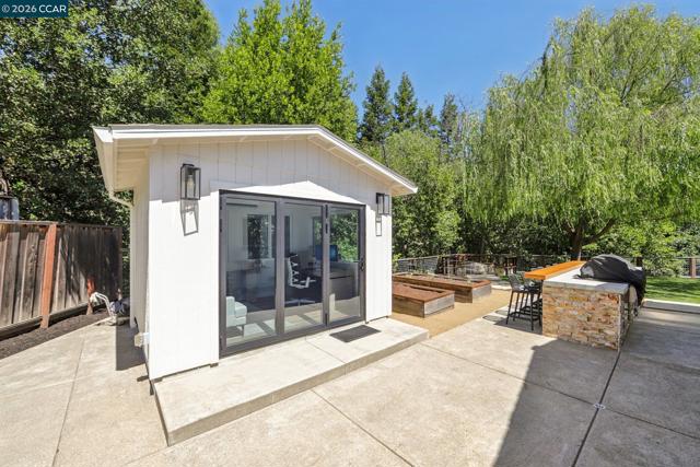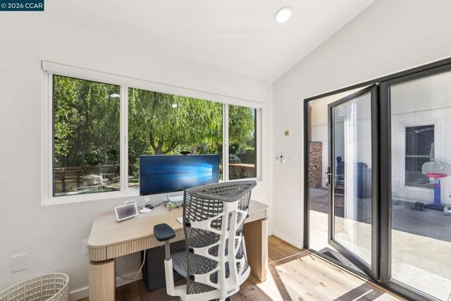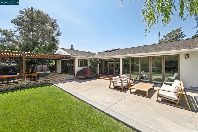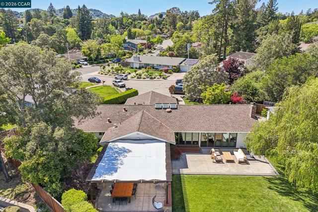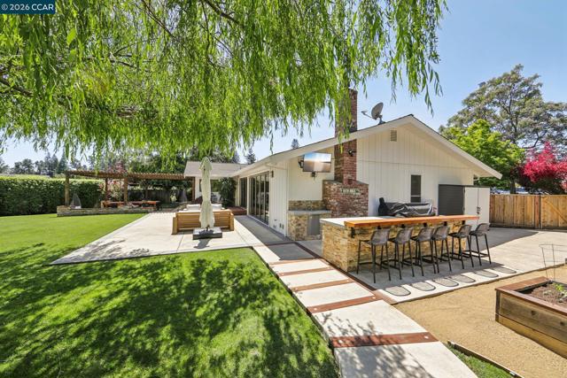 First opens Saturday (4/18) and Sunday (4/19) from 1 to 4pm. Stunningly renovated mid-century retreat on a rare .41-acre creekside cul-de-sac, offering exceptional privacy, resort-like grounds, and effortless indoor-outdoor living—just minutes to top-rated schools, town, the farmers market, and commute routes. A showpiece kitchen anchors the home with an oversized island, built-in refrigerator, 6-burner gas range, wine fridge, steam oven, walk-in pantry, and two dishwashers. Four sets of panoramic doors frame tranquil views and open to beautifully curated grounds with level lawns, covered patio, outdoor kitchen, fire pit, vegetable beds, multiple play areas, and a detached approx. 120 sq ft office with heating and cooling. A comprehensive remodel elevated every detail, including a reimagined atrium now serving as a striking office, all-new windows and doors, hardwood floors, modern lighting, indoor laundry, and a convenient half bath. More recent updates include two designer full baths with heated floors, including a hall bath offering both a soaking tub and curbless shower for comfort and accessibility. The finished garage features insulation, sheetrock, flooring, storage, and dedicated heating and cooling—ideal for a gym, studio, or parking. Additional highlights include a whole-house backup generator and dual EV charging (garage + exterior).