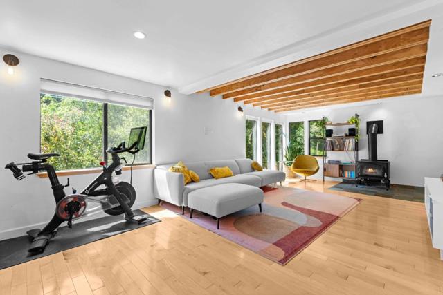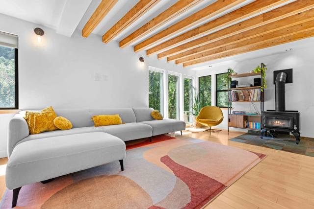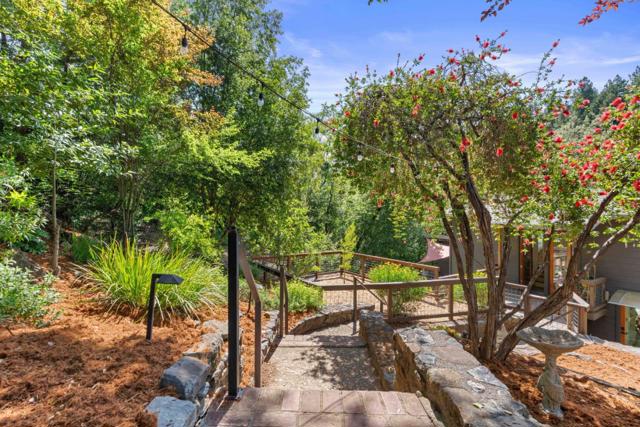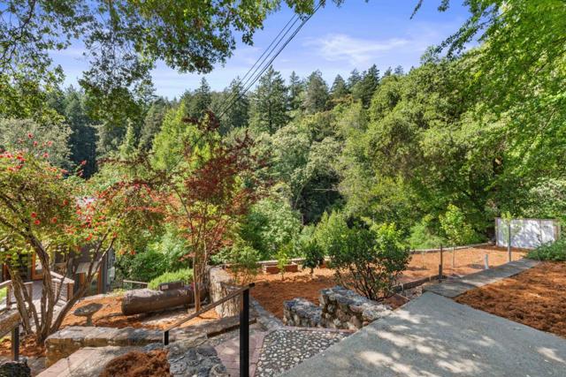 Recently installed 8-panel solar system with back up battery storage and inverter, plus a 220V EV charger. This updated home delivers the perfect blend of privacy, convenience, and modern comfort just 7 minutes away from downtown Los Gatos and schools. Bright and welcoming, the two-level layout (plus an approximately 300 sq. ft. basement) is filled with natural light from large windows and skylights. The main living area features beamed ceilings that flow easily to a spacious patio, perfect for relaxing and entertaining. The remodeled kitchen offers high ceilings and a light, open feel. Upstairs, two comfortable bedrooms and two updated bathrooms provide a clean, modern retreat. Multiple terraced yards are an oasis for gardening. Gentle creek nearby creates a peaceful and inviting outdoor setting. Additional highlights include: central A/C and heating, upgraded electrical panel, two tankless water heaters, backup battery, and ample parking. Located within the highly regarded Los Gatos school district and a tight knit mountain community surrounded by majestic redwoods, offering a rare blend of serene mountain living with convenient access to town.