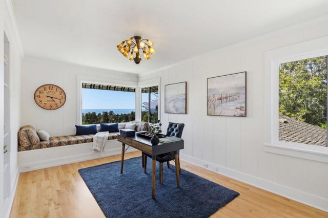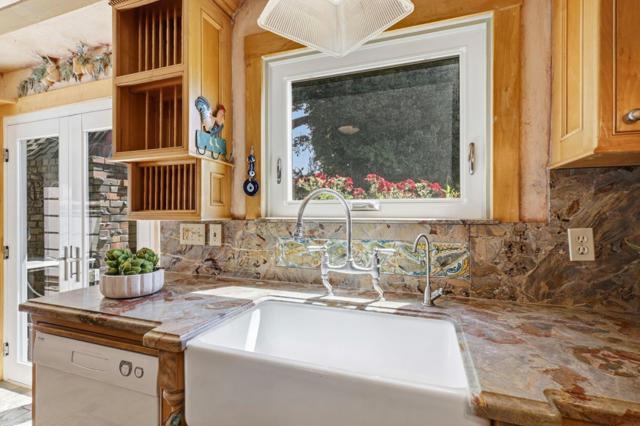 Tuscan-inspired villa with incredible OCEAN VIEWS on a private 11,543± sf lot. Built in 1950, 4 bed, 2.5 bath home offers old-world charm with modern upgrades. Plus, a detached, additional 301sf, rear yard ADU/guesthouse with full kitchen, bath. Enjoy colorful sunsets from inside and from the arbor-covered patio. Features include exposed beam vaulted ceilings, 2 fireplaces (living room & lower family rm, 3-car garage, outdoor brick BBQ, Venetian plaster walls in primary and hall. Large lower family rm /wine cellar/craft room. Kitchen features Viking 6-burner gas stove with dual fuel electric oven, 36 Sub-Zero built-in refrigerator/freezer, Viking dishwasher, 2 sinks, Travertine marble. Improvements include window retrofit (2022/2023), whole house water filter, reverse osmosis system (2022), Sewer, plumbing, forced air furnace with A/C, owned solar panels with Tesla battery backup, and 3 new garage doors with lifts and more! Grounds feature fig, lemon, cherry, apricot, and peach trees, several patios and a rare Vintage cable car from Shadowbrook's Hillivator! Close to Seascape Golf Club, tennis, beach, and Nisene Marks trails. This one you must see! A million dollar ocean view, plus an ADU! You'll find yourself relaxed and lingering a long time. This is the one to buy!