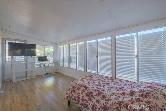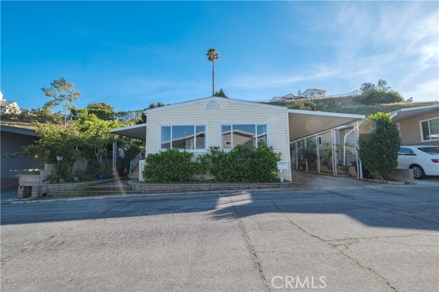 This beautiful home is located in the desirable Skyline mobile home park, just across the street from the Rolling Hills Plaza. The home is move in ready and filled with upgrades such as, newer laminate flooring, paint, updated kitchen and newer vinyl windows. The master offers sliding doors that lead to out nice quiet outside area. Master also has a walk-in spacious closet. A nice and private patio is just off the master bedroom through those sliding doors. The 2nd bedroom has been converted to an open space for a family room that opens up to the kitchen. It can easily be converted back. The kitchen offers Stainless and glass range hood and granite counter tops. Additional indoor space and privacy is offered in the enclosed porch, which is perfect for guests, an office, extra storage or a craft room. The front porch is covered and is a quiet space to relax. The entry and living room have high ceilings and provide a ton of natural light. The Skyline Park is full of wonderful amenities, including a clubhouse/ recreational room, a sparkling pool and spa, BBQ area and more! There are two laundry rooms and car wash areas and a lush greenbelt park for walking your dog. The community is very friendly and it is safe and secure and has controlled access and security night.
