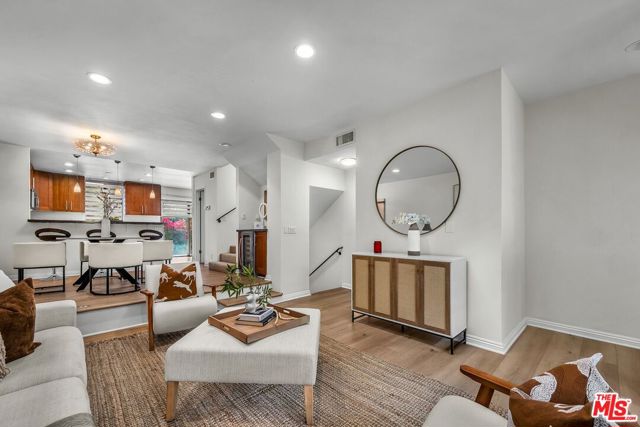 Welcome to this beautifully updated French Tudor townhome-style condo in Playa del Rey, offering the comfort and feel of a single-family home. Enjoy the convenience of direct access to side-by-side parking with EV charging, along with central AC and heating for year-round comfort. Inside, you'll find a light-filled living space with thoughtful updates throughout. Upstairs, both bedrooms feature plush new luxury carpeting, en-suite baths, and spacious walk-in closets, creating the perfect private retreat. Downstairs, new vinyl Hardwood flooring flows seamlessly through the main living areas. The open-concept kitchen and dining area are ideal for everyday living and entertaining, with direct access to a balcony perfect for morning coffee or evening grilling. Just a few steps down, the inviting living room showcases high ceilings, a decorative fireplace, and opens to a private patio, perfect for hosting or relaxing outdoors. The kitchen is both stylish and functional, featuring natural wood shaker cabinetry, stone countertops, stainless steel appliances, a wine fridge, and a dry bar. A convenient half bath completes the main level. A standout feature is the expansive bonus space just off the garage (not included in the square footage), complete with a full-size washer and dryer ideal for a home office, gym, or creative space. Additional highlights include direct access from the community garage, extra storage, and an HOA that covers earthquake insurance, water, trash, and exterior maintenance. All of this just under a mile from the beach, with easy access to local dining, coffee shops, and boutiques bringing the best of Playa del Rey right to your doorstep.