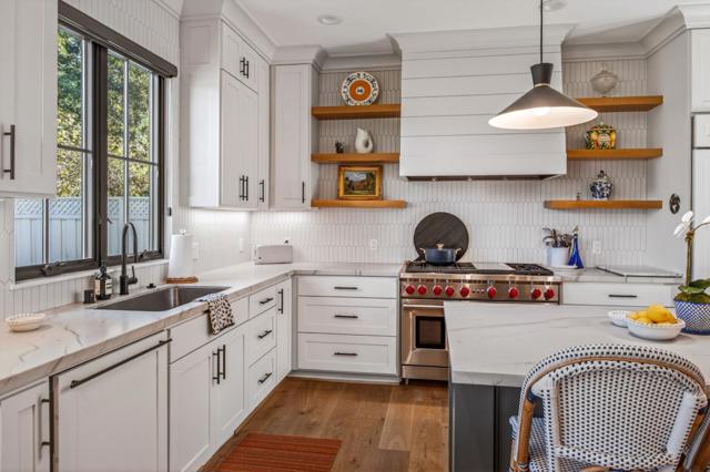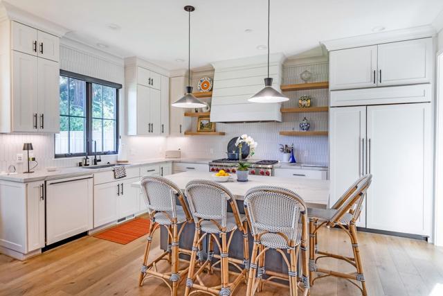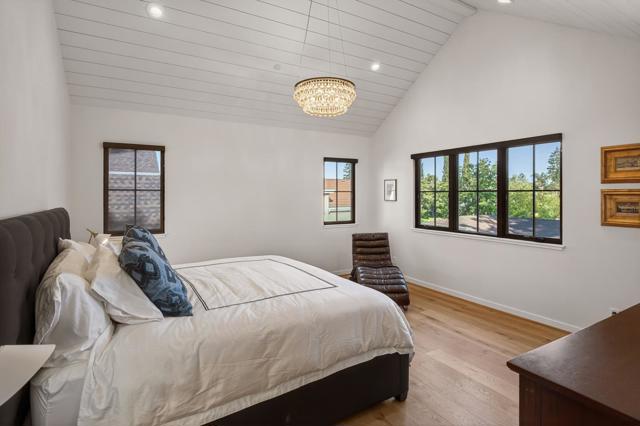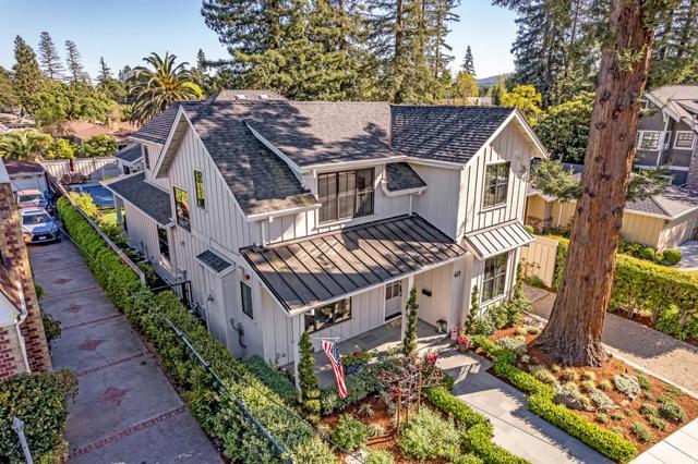 Indoor-outdoor living takes center stage at this elegant, modern farmhouse in Redwood City's most sought-after neighborhood, Edgewood Park! Built in 2019, the home offers a fresh, contemporary feel with classic interiors that include fine hardwood floors, abundant natural light, and a floor plan that adapts easily to a variety of needs. Formal living and dining rooms are complemented by a full wine bar and a designer kitchen and a spacious family room opens through a retractable wall of glass to the resort-like grounds. Two bedrooms on the main level are perfect for guest and/or office needs, while three additional bedrooms upstairs, including the primary suite, are arranged around a central lounge. The rear grounds are equally well appointed, with a separately fenced pool, expansive lawn, and generous space for entertaining and play in a gated setting. The overall result is a home that delivers both style and functionality in a premier location just minutes from vibrant downtown amenities and with easy access to major commute routes.