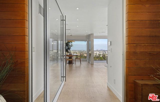 Perched above the iconic Sunset Strip, the Fareholm enclave is home to a remarkable collection of modernist and contemporary architecture, including works by visionaries such as Richard Neutra, R.M. Schindler, and leading contemporary firms like Marmol Radziner, Tag Front, XTEN, and Walker Workshop. Within this celebrated neighborhood, 7944 Fareholm Drive stands as a striking modernist homeprivate, serene, and architecturally refined.Thoughtfully redesigned by Paul McClean, this four-bedroom, four-bathroom residence seamlessly blends sleek contemporary design with timeless elegance. A zinc roofing system and an oversized pivot front door set a dramatic tone upon entry, opening to expansive interiors defined by pitched ceilings, recessed LED lighting, and wide-plank red oak flooring. The home is equipped with a Control4 smart system, offering seamless control of lighting, climate, and security. Throughout, oversized windows and French doors frame sweeping panoramic views of the glittering expanse of Los Angeles, bringing natural light and breathtaking scenery into nearly every room.The main level features an open flow between the living, dining, and kitchen spaces, all extending to balconies that capture elevated city vistas. A custom coffered ceiling and fireplace anchor the family room, creating a warm yet sophisticated gathering space. The kitchen features Miele appliances (including a built-in espresso machine), perfect for cooking enthusiasts, and a tucked away, well-appointed guest bedroom completes this level.A sculptural spiral staircase leads to the lower level, where a luxurious primary suite offers privacy and comfort, complete with a walk-in closet, spa-like bathroom, and private balcony, along with two additional bedroom suites. Additionally, a separate lower-level deck and office provide a quiet, dedicated workspace.With unobstructed, shimmering views and close proximity to the best of West Hollywood, this residence offers a rare combination of convenience, design, location, and lifestylean exceptional opportunity in the Hollywood Hills.