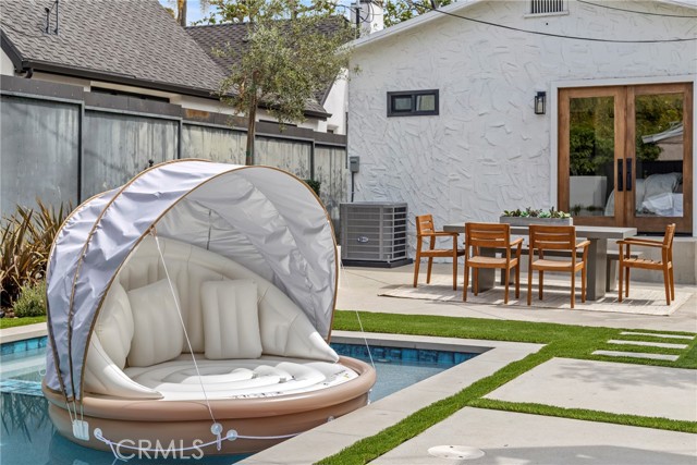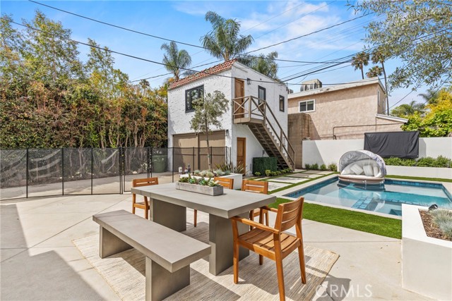 Offering approximately 2,488 sq ft of total usable and functional space, the property includes a 1,768 sq ft main residence with 3 bedrooms and 2.5 bathrooms, a detached approximately 360 sq ft casita (permitted as a rumpus room) with its own bathroom situated above the garage, and an additional approximately 360 sq ft flex space below, currently staged as a pool house/game room.