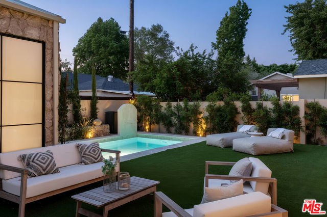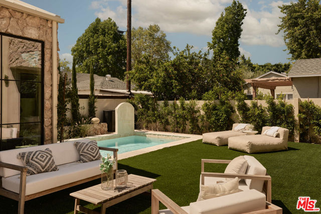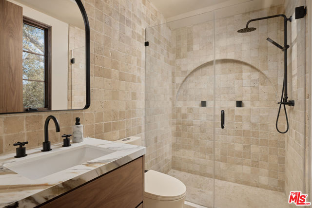 This new construction Modern Tuscan residence blends timeless European warmth with refined contemporary luxury. Offering 5 bedrooms and 5.5 bathrooms, including a beautifully integrated ADU, the home is thoughtfully designed for both elegant living and effortless entertaining. Designer finishes elevate every space, from Roman clay walls to striking Statuario Rosso marble, complemented by custom walnut woodwork that adds richness and depth throughout. The spa-inspired primary suite features a beautiful arched double shower, creating a true retreat-like experience at home. Outdoors, the residence continues to impress with a serene natural stone patio and pool, delivering a resort-style ambiance ideal for relaxation or gatherings. Set in a superior, highly walkable location, this home offers the rare combination of privacy, luxury, and everyday convenience. A distinctive opportunity to own a masterfully crafted home where craftsmanship, design, and location come together seamlessly.