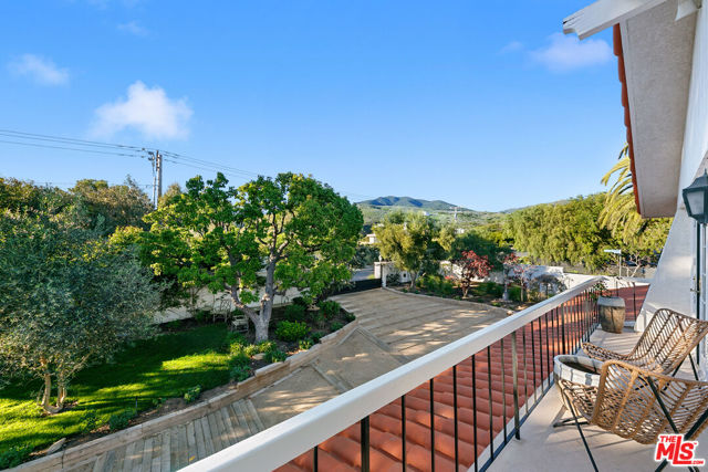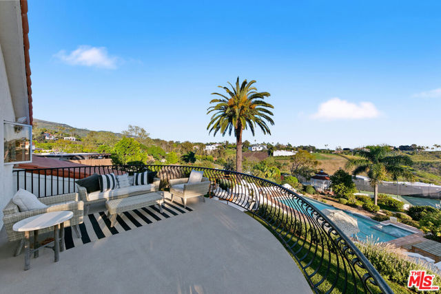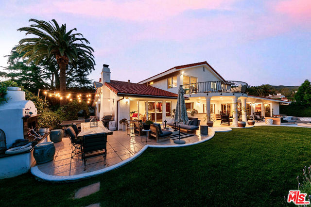 Sitting on nearly an acre, this exceptional home offers sweeping ocean views, resort-like amenities, and privacy within gated Cavalleri estates. A double gated driveway opens to a beautifully landscaped property designed for relaxation and grand-scale entertaining. The light-filled residence captures the essence of coastal living, with expansive patios and outdoor spaces that take full advantage of the stunning surroundings. The ocean view primary is on the entry level, along with another bedroom and bath. Upstairs are two more bedrooms, both en-suite, along with a huge bonus room, also with beautiful ocean and hillside views. A sparkling pool and spa sit at the heart of the grounds, complemented by a lighted tennis court, lush lawns, and vibrant gardens dotted with mature fruit trees. Multiple outdoor gathering areas create the perfect setting for hosting, including a charming outdoor fireplace lounge and a barbecue area ideal for sunset dinners and weekend gatherings. The generous grounds, which are fully walled and gated, provide a sense of serenity and seclusion while still being just minutes from Malibu's shops, restaurants, and beaches. Private, picturesque, and designed for effortless indoor-outdoor living, this Mediterranean retreat offers the ultimate Malibu lifestyle whether enjoying quiet coastal mornings or entertaining under the stars.