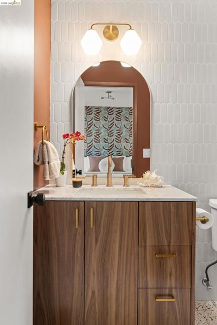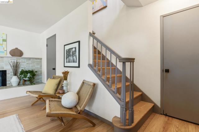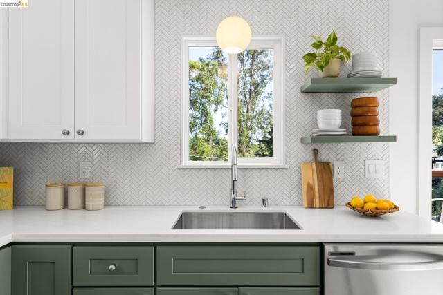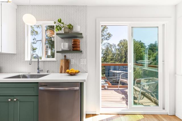 Beautifully updated 3BD/2.5BA home offering modern design and seamless indoor-outdoor living in a convenient, verdant setting. Level-in access from street and garage with interior entry. The open main level features a cheerful living/dining area with tiled fireplace, and a convenient half bath. The fully remodeled contemporary kitchen opens to a sweet deck—perfect for al fresco dining or morning coffee. Upstairs includes a spacious primary suite with a sleek modern bath, walk-in shower, and custom walnut vanity, plus a second bedroom and updated hall bath with geometric tile. The lower level offers a versatile third bedroom with deck access and a generous family room with sliding doors to another deck—ideal for relaxing and entertaining. Close to East Bay Regional Parks with trails and bike paths, Montclair Village amenities, commute options, The Hills Swim and Tennis Club. A wonderful blend of style, comfort, and convenience!