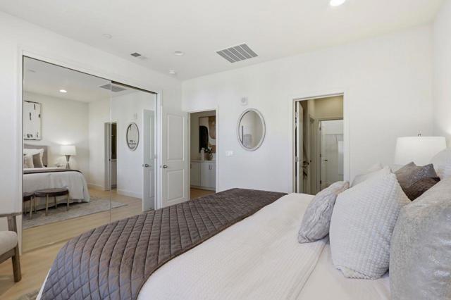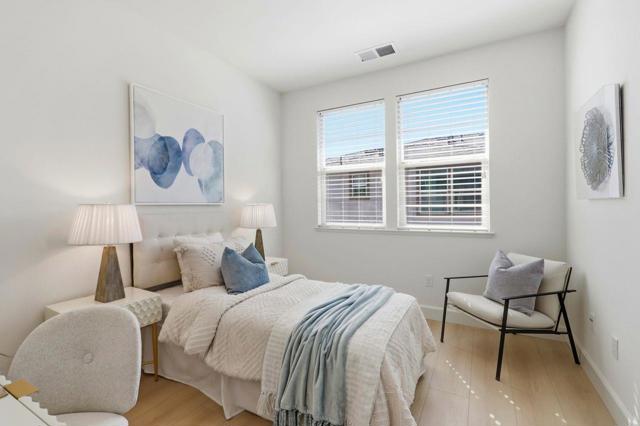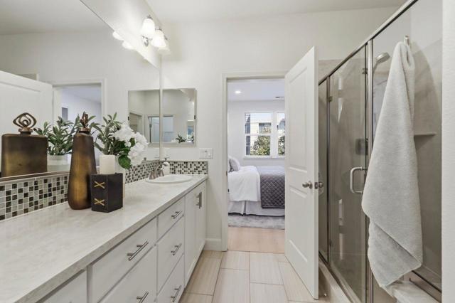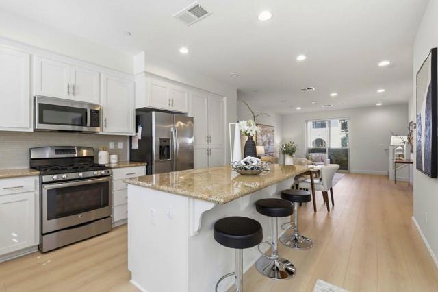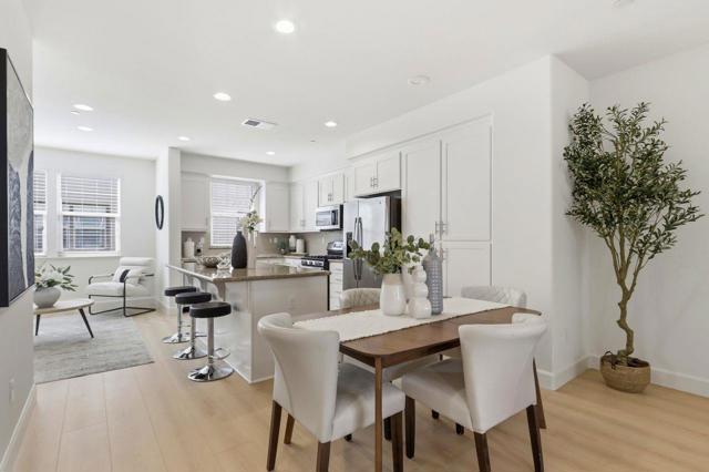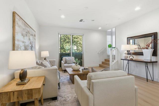 Welcome to comfort and elegance! This home offers approximately 1,730-square feet of living space with three bedrooms and three and a half baths! One bedroom with en-suite bath is located on the ground floor, while level 2 offers an open floor plan boasting a living room with balcony access, a dining area, a half bath and a kitchen with granite counters, a large island and stainless-steel appliances, including a gas cooktop. On the third floor sits the primary bedroom and junior suite. This home also has indoor laundry, central A/C and a two-car garage. Complex has a swimming pool and is next to Central Park. Easy access to the Apple Campus, shopping, schools and Kaiser.
