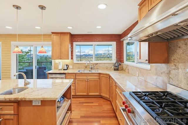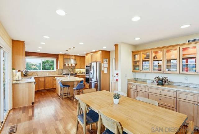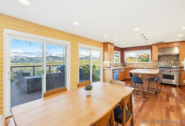 Nestled atop this mountain in the highly desirable Hillsdale community, this stunning home offers breathtaking mountain and city views. Featuring 5 bedrooms, 2 1/2 baths, with 2,279sf and lot size of 51,836sf. It also features an attached 2-car garage with dual entry double-car garage doors. A 2-story cathedral ceiling living room opens to the dining room and kitchen. This open concept remodeled kitchen with granite countertops, stainless 6 burner Wolf range, Wolf hood, wall oven and refrigerator. Spacious yard for any landscape ideas, extended driveway for parking and a secondary backyard parking area via 2nd garage door. A newly rebuilt low-maintenance Trex decking, perfect for lounging and dining entertainment. New solar system to be paid off by seller at close of escrow. Two water heaters and an oversized tall detached shed. Multi-tier retaining wall and paver patio built. Year round fruit on this large lot with five mature Fuerte avocado trees that produce hundreds of avocados yearly, two different types of orange trees, lemon tree and an apricot tree. Website with 3D tour and video, 1384merritt.com New lines were run for entire sprinkler system in 2023 and it is on a Rachio timer now. New landscaping was installed throughout the property with a high concentration of new plants along the driveway.