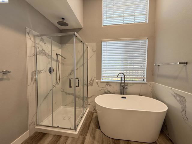 Discover this beautifully maintained, North facing and rarely available single-story home nestled in one of Pleasanton’s most desirable neighborhoods—without the hassle of an HOA. Welcome to 3074 Boardwalk St., where refined single-level living meets the best of Pleasanton’s lifestyle. This spacious 3-bedroom, 2-bathroom residence boasts a sun-filled open-concept layout with vaulted ceilings in the living room, family room, and bedrooms, creating a bright and inviting atmosphere throughout. The kitchen offers generous counter space and seamlessly flows into the family room, making it an ideal spot for entertaining. The primary suite provides a true retreat with a newly remodeled bathroom with a soaking tub and walk-in closet. Outdoor living is redefined with a low-maintenance yard and a large 10-person spa, offering peaceful relaxation and effortless enjoyment. Two car garage is EV ready with a 240V outlet and a 16x16 fully finished storage loft. Conveniently located near top-rated Pleasanton schools, walkable parks and trails, and easy access to I-580, I-680, BART, restaurants, and shopping, this home offers a perfect blend of comfort and convenience.