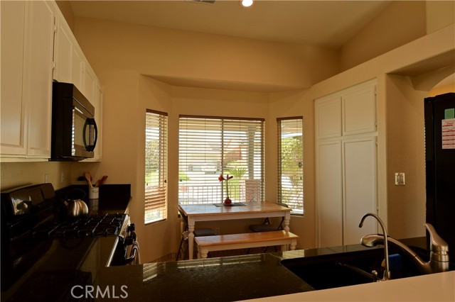 The lovely eat-in kitchen is highlighted by a front-facing bay window, granite countertops, updated appliances, and ample pantry storage. The generously sized primary suite offers a private retreat with an ensuite bathroom, a large walk-in closet, and plantation shutters on the sliding door with direct access to the rear yard.