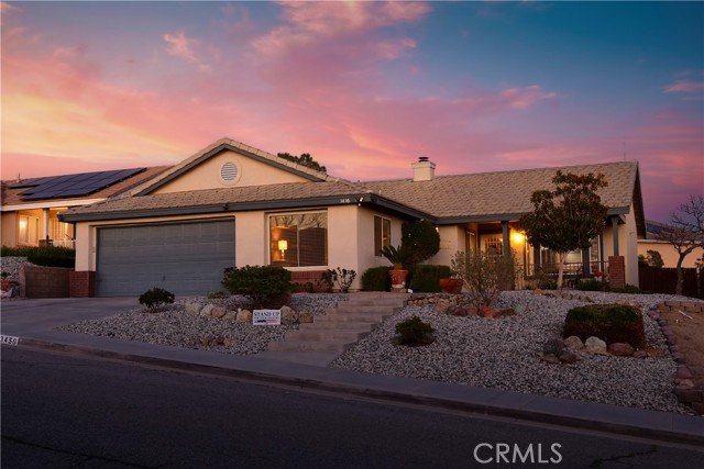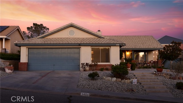 Enjoy scenic hilltop views of the surrounding mountains and twinkling city lights. Outdoor spaces are equally appealing, with beautifully manicured front landscaping featuring elegant steps and tasteful xeriscaping. The expansive, fully fenced backyard includes a covered patio with a slab, perfect for gatherings or everyday enjoyment.